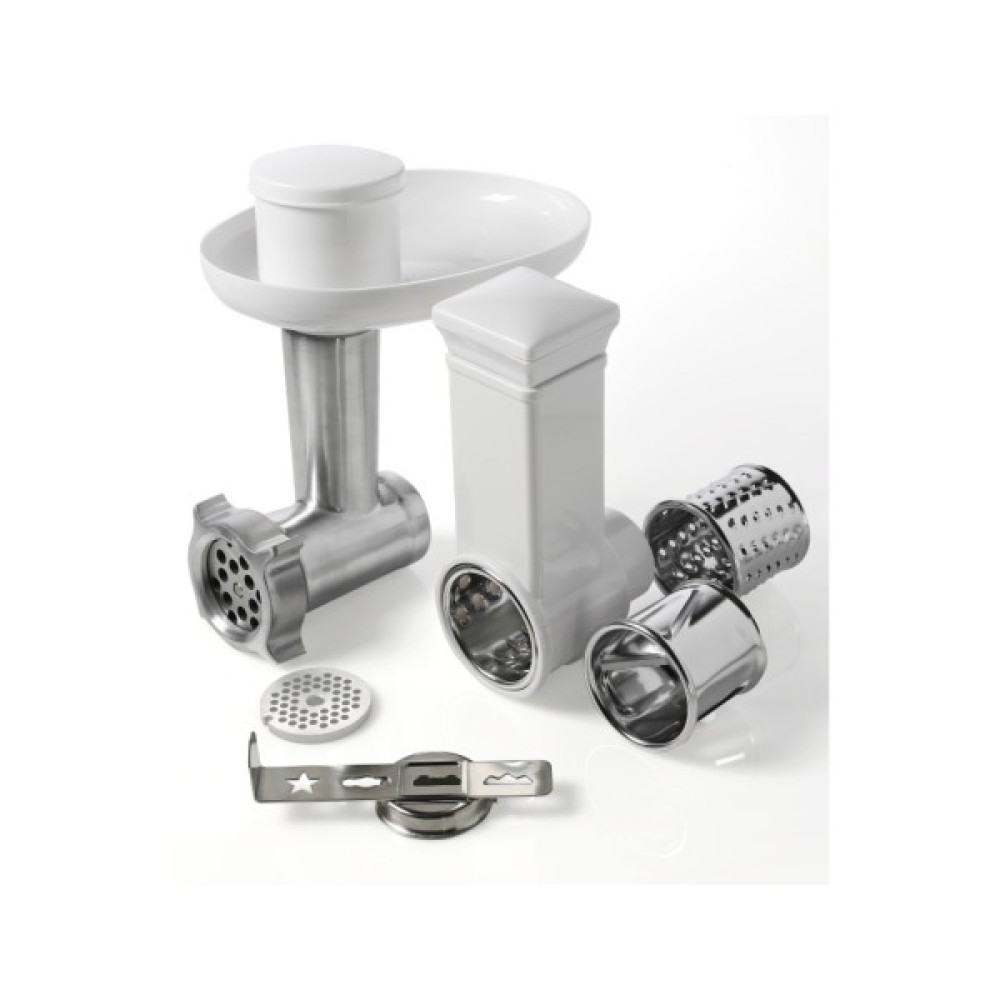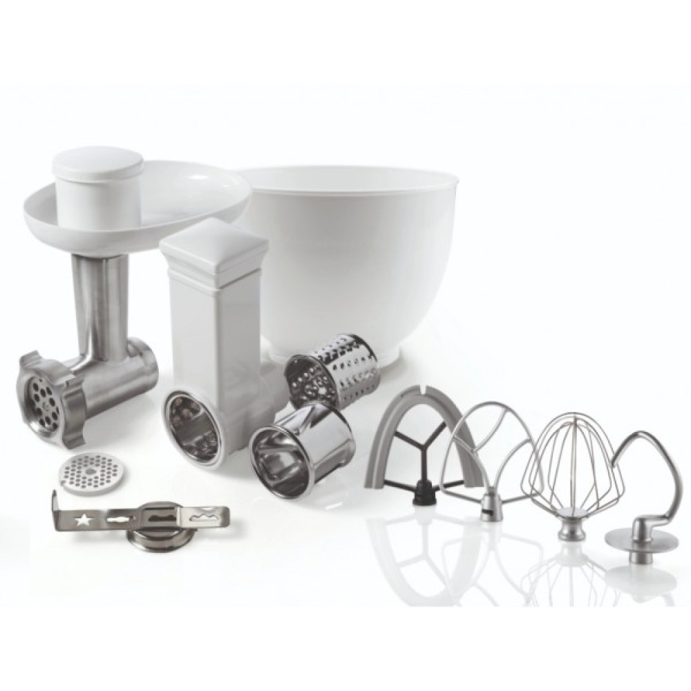 Для всіх процесів перед випічкоюЗмішування, збивання і вимішування. Комплектація кухонної машини включає гак для вимішування тіста, вінчик, лопатку для змішування і інноваційну гнучку насадку. Віночок допоможе в лічені хвилини збити вершки і білки в піну, гак для тіста справляється з самим тугим тестом, а лопатка використовується для змішування інгредієнтів до легких, повітряних текстур, наприклад, кремів і соусів.