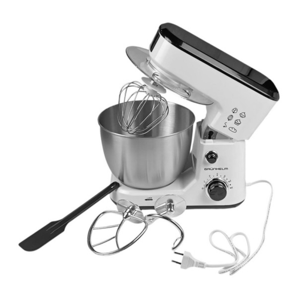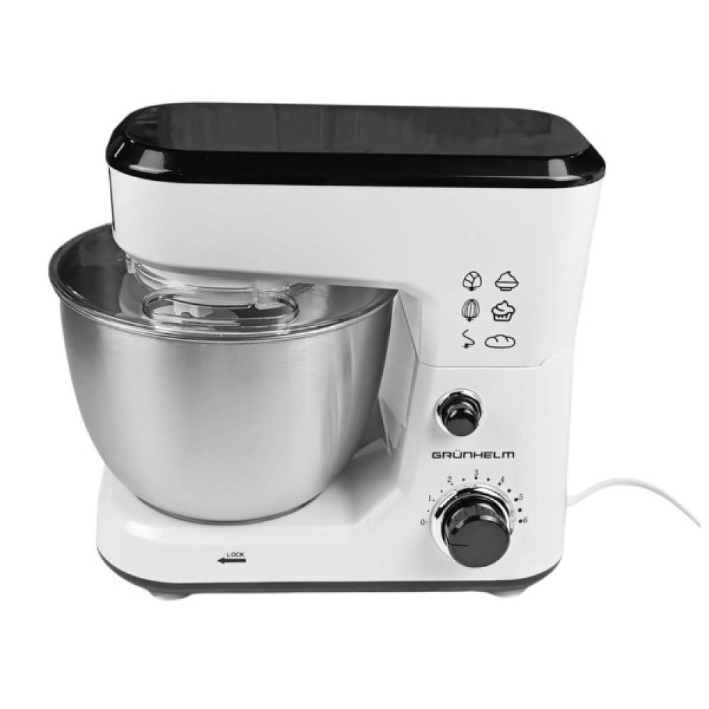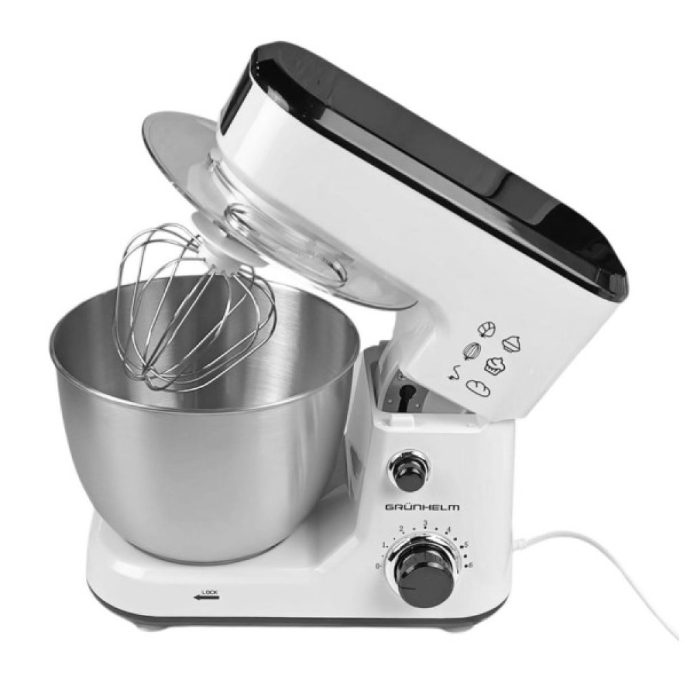 Кухонний комбайн GKM0010 Grunhelm стане незамінним помічником на Вашій кухні. Знімна чаша об'ємом 4 л виготовлена ​​з нержавіючої сталі. Для зручного використання передбачено 6 швидкостей, що регулюються за допомогою ручки.