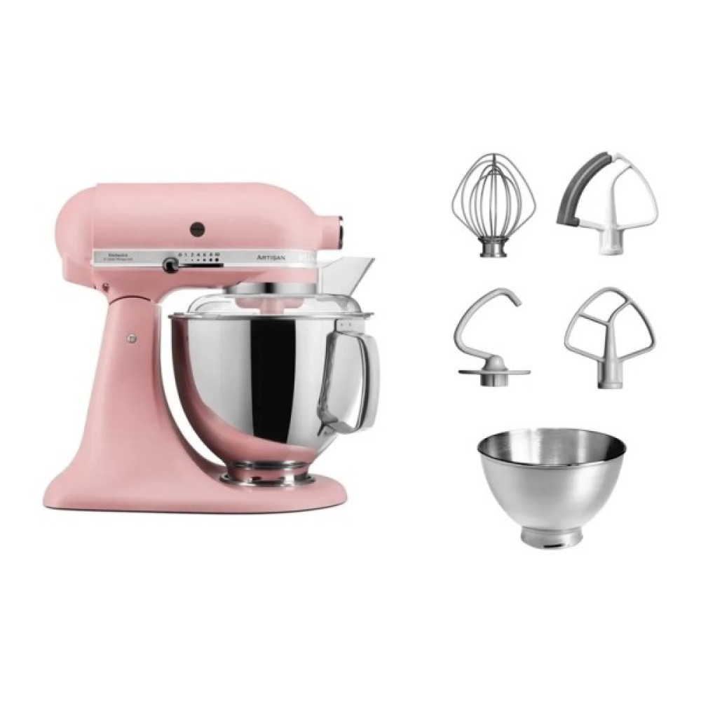 Прилад пристосований для збивання та перемішування, а також може виконувати набагато більш просунуті дії. Купуючи планетарний міксер KitchenAid Artisan 4,8 л 5KSM175PSEDR, ви отримуєте стандартний набір насадок: