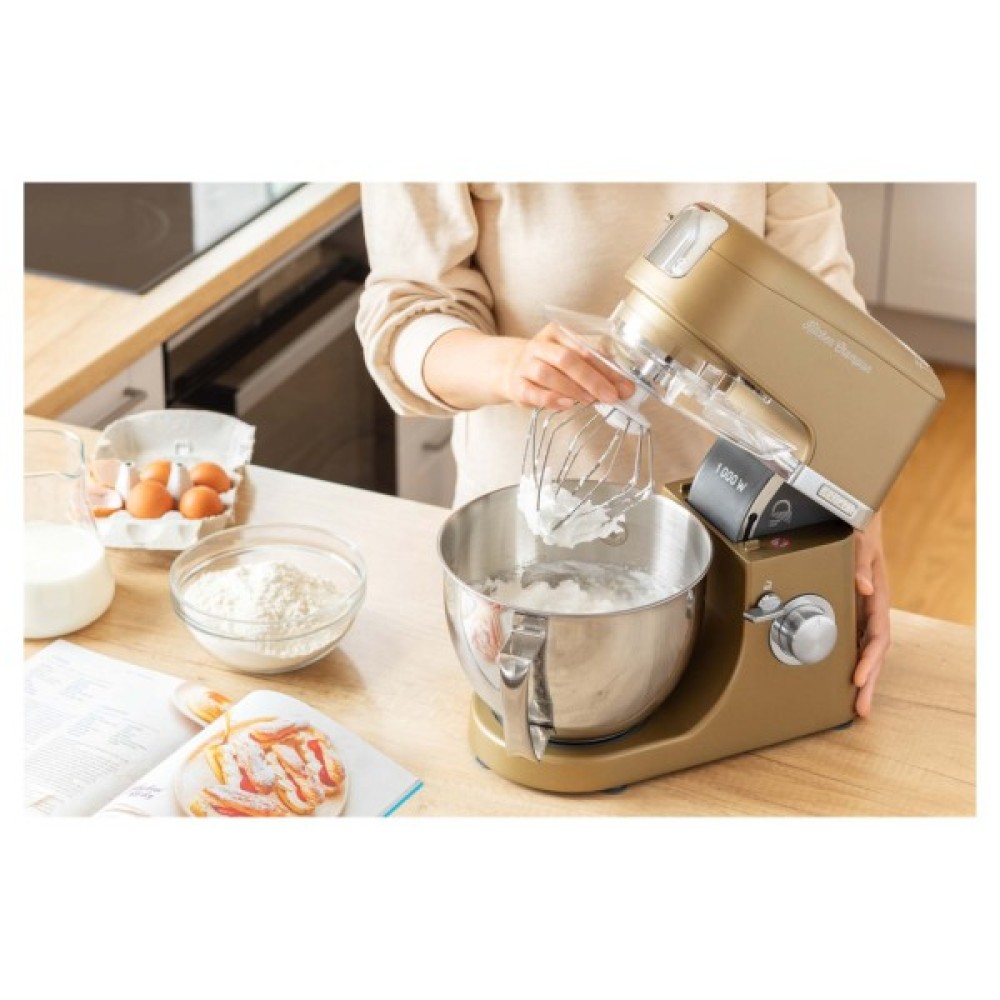 Стильна і багатофункціональна модель - універсальний кухонний комбайн Sencor STM 6377CH. Виріб забезпечує можливість автоматичного замішування тіста, збивання. На окрему увагу заслуговує система планетарного змішування, при якій робочий інструмент рухається по всьому периметру чаші.