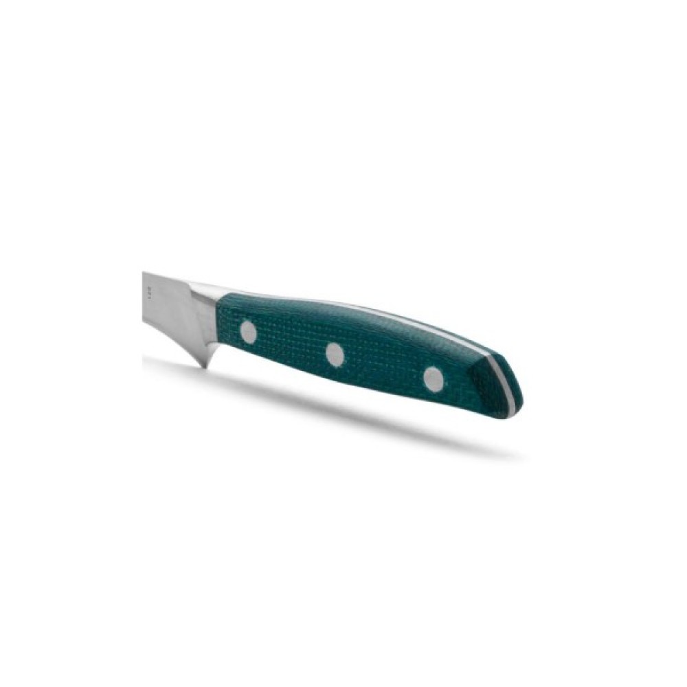 Руків'я шеф-ножів серії «Бруклін» з оригінальним дизайном виготовили із стійкого матеріалу Мікарта, який не створює щілин та запобігає проникненню мікроскопічних елементів їжі. Закріплюють конструкцію руків'я професійного ножа міцні металеві заклепки, що сприяють довготривалій роботі з ножем на кухні. Больстер розташовується на передній частині руків'я ножа та зменшує навантаження на руку кухаря під час нарізання. Руків'я кухонного ножа стійка до кислот, хлору, миючих засобів та високих температур.