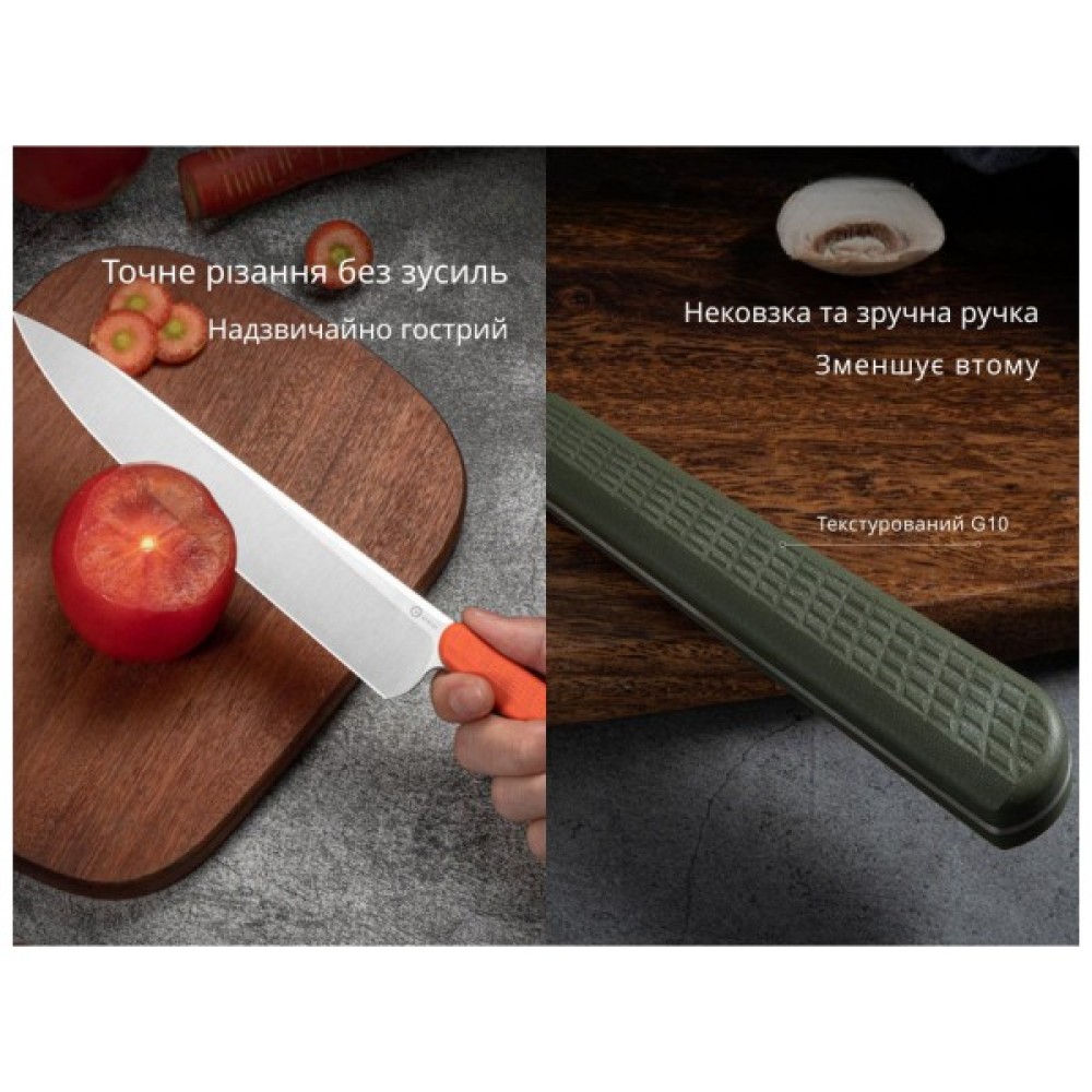 Відчуйте себе професійним шеф-кухарем за допомогою кухонного ножа Civivi Cibus! Цьому інструменту можна довірити найвідповідальніше завдання — від найтоншого нарізання овочів до оброблення м'яса. Все завдяки клинку Drop Point з подовженим лезом, яке дозволяє працювати з різними харчовими продуктами з максимальним контролем різу.