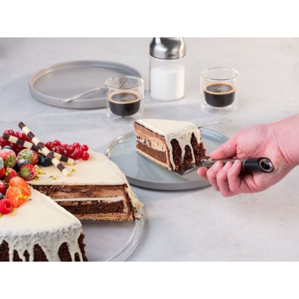 Ніж-сервер для тортів із зубчастим лезом Gefu Primeline. Завдяки гострому, як бритва, серверу для тортів із нержавіючої сталі зі спеціальним зубчастим лезом шматочки торта чи пирога, а також смачні десерти можна розділяти на порції та подавати безпосередньо.