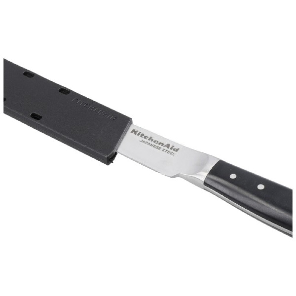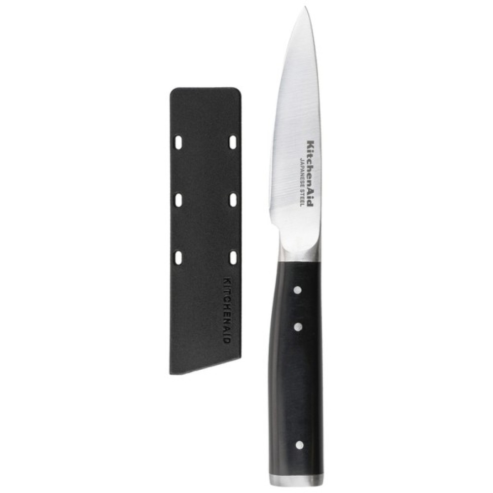 Ніж для чищення від KitchenAid ідеально підходить для повсякденного приготування їжі – від нарізування делікатних фруктів до нарізування закусок. Цей кований ніж майстерно виготовлений із напівполірованої високовуглецевої японської сталі, загартованої та загартованої, щоб забезпечити довговічну кромку для професійної та якісної нарізки щоразу.