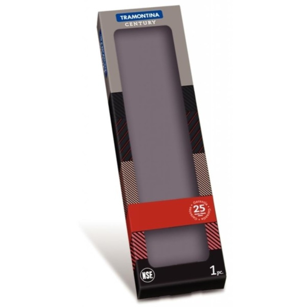 Лезо коване, виготовлене з вуглецевої неіржавкої сталі з домішками хрому та молібдену. Сталь гартується на твердість 55-58 одиниць особливим способом глибокого охолодження, що забезпечує тривалу гостроту леза й ідеальний зріз. Лезо не тьмяніє, стійке до високих температур. Як прикраса — гравіювання логотипу Tramontina Century.