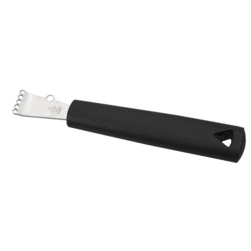Ніж для карбування цитрусів від Triangle має лезо з п’ятьма дрібними круглими отворами та одним великим отвором з виступом для формування декоративних смужок цедри. Ніж допоможе швидко та без зайвих зусиль зробити однакові смужки з цедри лимона, апельсина, лайма та інших цитрусових. Ідеальний для декорування салатів, десертів та коктейлів.