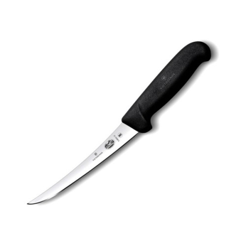 FIBROX Boning - обвалочний ніж із вузьким вигнутим лезом від швейцарської компанії Victorinox. Довжина леза 12 см - гладка заточка ріжучої кромки. Жовта ергономічна руків'я. Ніж для обвалки Фіброкс допоможе віртуозно впоратися з тушею. Легко відокремить м'ясо від кісток.