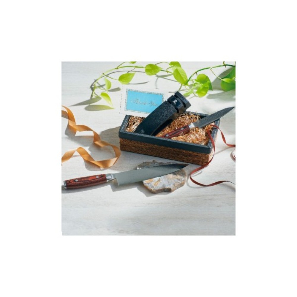Його 69-шарове дамаське лезо з серцевиною із високовуглецевої сталі VG10 поєднує рідкісну гостроту, стійкість до корозії та довговічність. Кожен ніж показує характерний хвилястий дамаський малюнок, що відбиває традиції японського ковальського мистецтва.