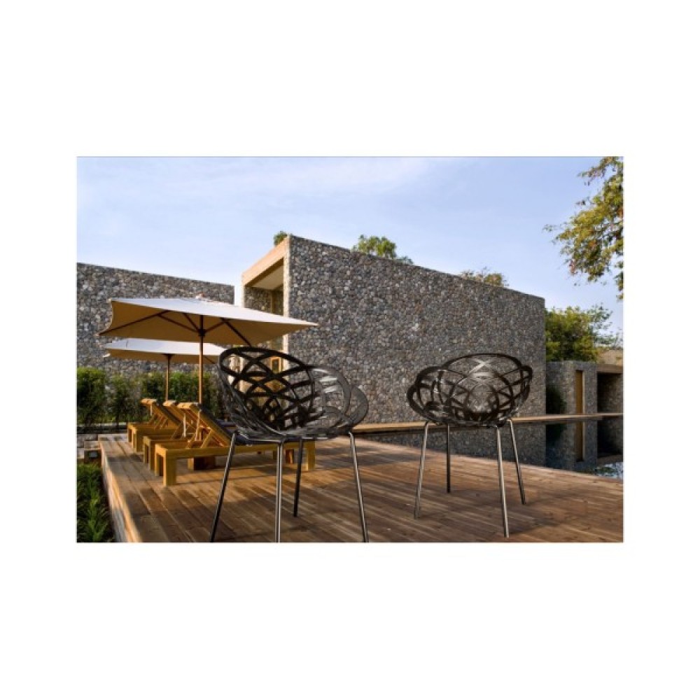 Ажурне крісло Flora-ML подібне обрисами до ніжної квітки. Плавні вигини крісла, сидіння й спинка, що забезпечують зручну посадку, стійкі ніжки роблять його максимально комфортним. Сидіння виготовлено з полікарбонату, основа — металева, хромована, ніжки обладнані протиковзними поліуретановими заглушками. Крісло виготовлено з міцних матеріалів, стійких проти подряпин, механічних пошкоджень, впливу вологи. Чудово доповнить інтер'єр вітальні, спальні, обідньої зони. Може бути використано для облаштування приміщення кафе, ресторану. Рекомендується використовувати в приміщенні. Крісла штабелюються — до 4 шт.