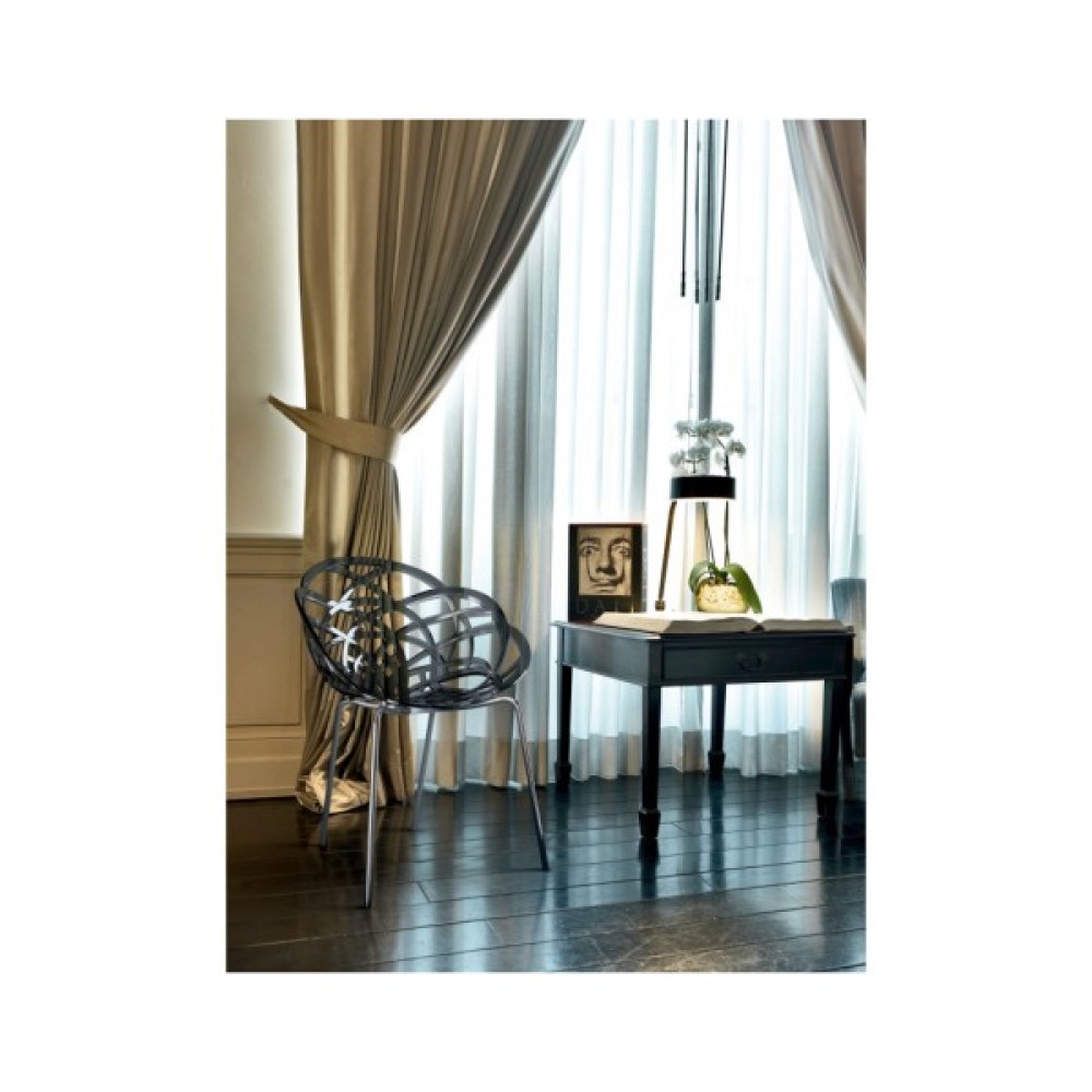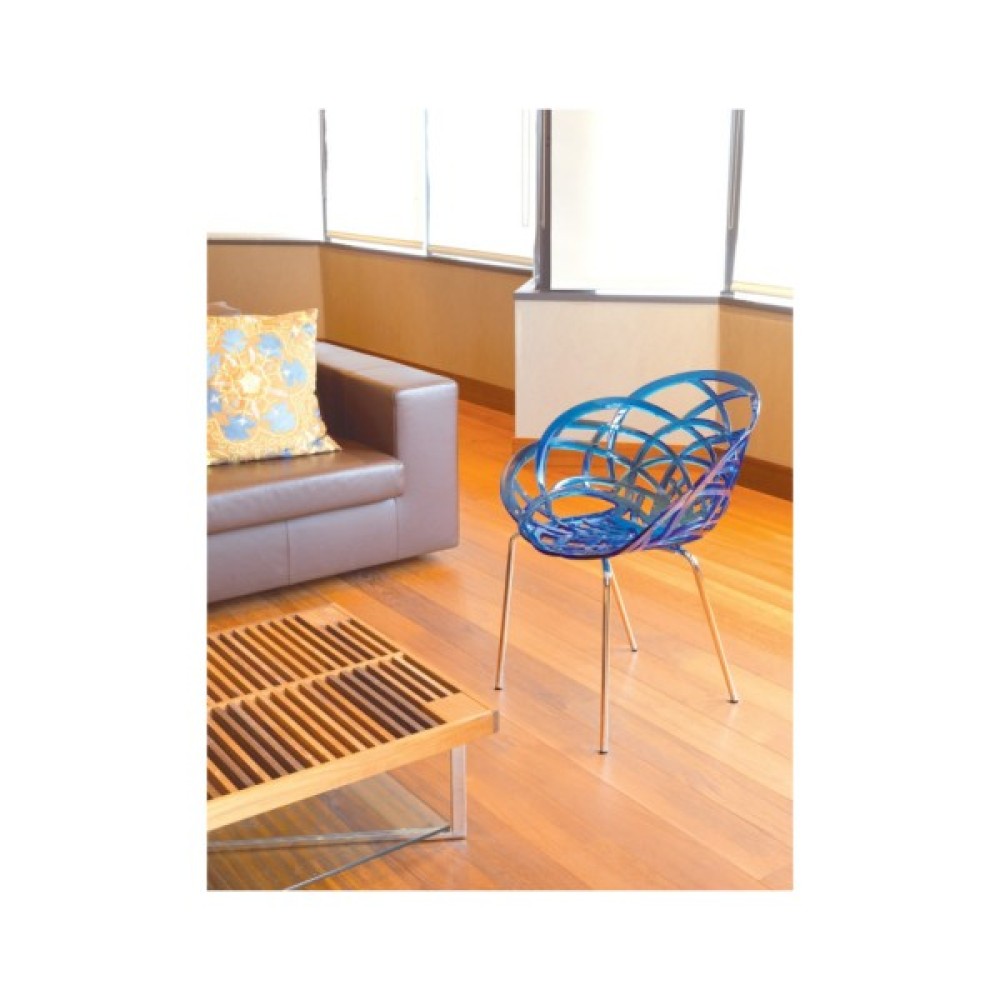 Ажурне крісло Flora-ML подібне обрисами до ніжної квітки. Плавні вигини крісла, сидіння й спинка, що забезпечують зручну посадку, стійкі ніжки роблять його максимально комфортним. Сидіння виготовлено з полікарбонату, основа — металева, хромована, ніжки обладнані протиковзними поліуретановими заглушками. Крісло виготовлено з міцних матеріалів, стійких проти подряпин, механічних пошкоджень, впливу вологи. Чудово доповнить інтер'єр вітальні, спальні, обідньої зони. Може бути використано для облаштування приміщення кафе, ресторану. Рекомендується використовувати в приміщенні. Крісла штабелюються — до 4 шт.