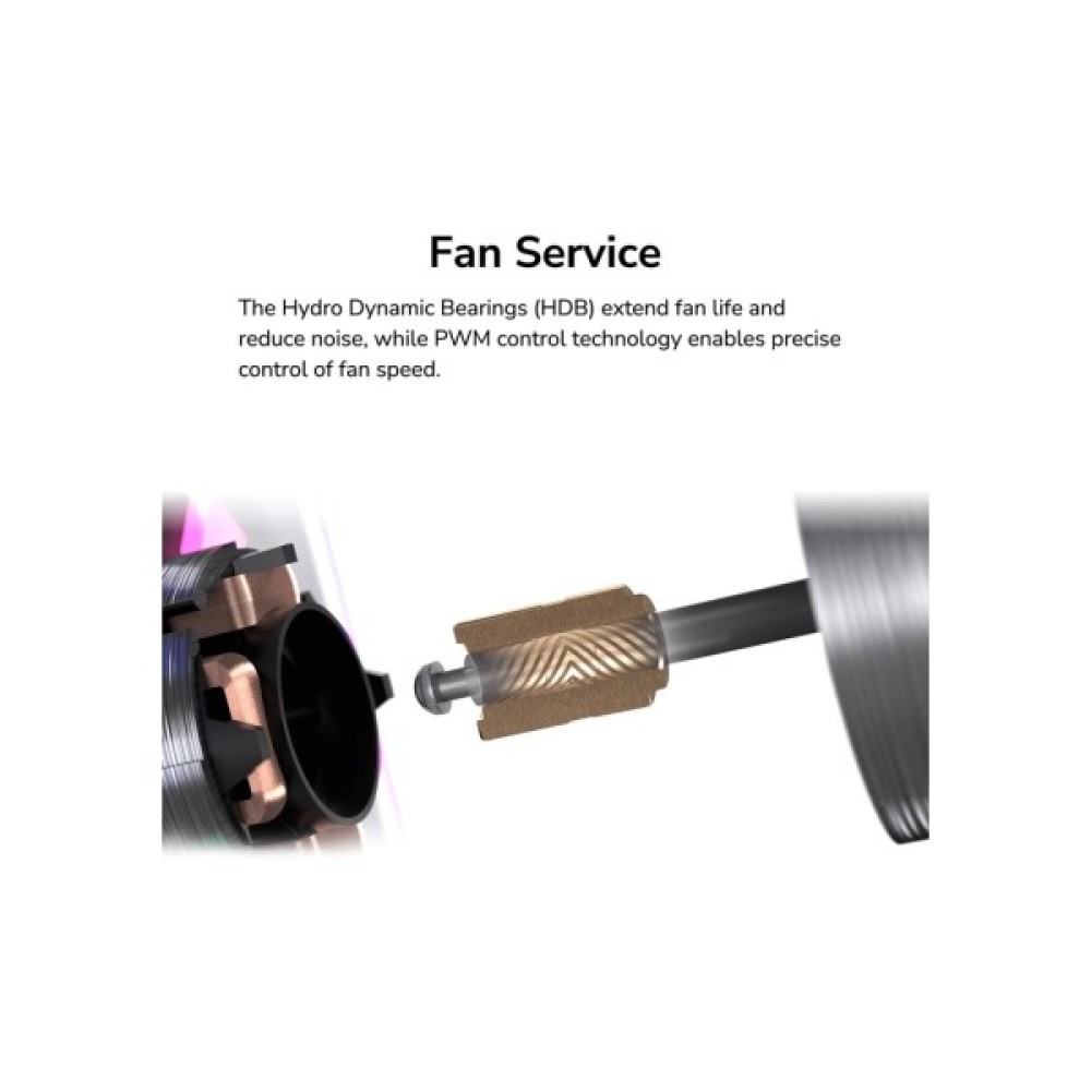 Гідродинамічні підшипники з PMWГідродинамічні підшипники (HDB) подовжують термін служби вентилятора та знижують рівень шуму, а технологія управління ШІМ забезпечує точний контроль швидкості обертання вентилятора.