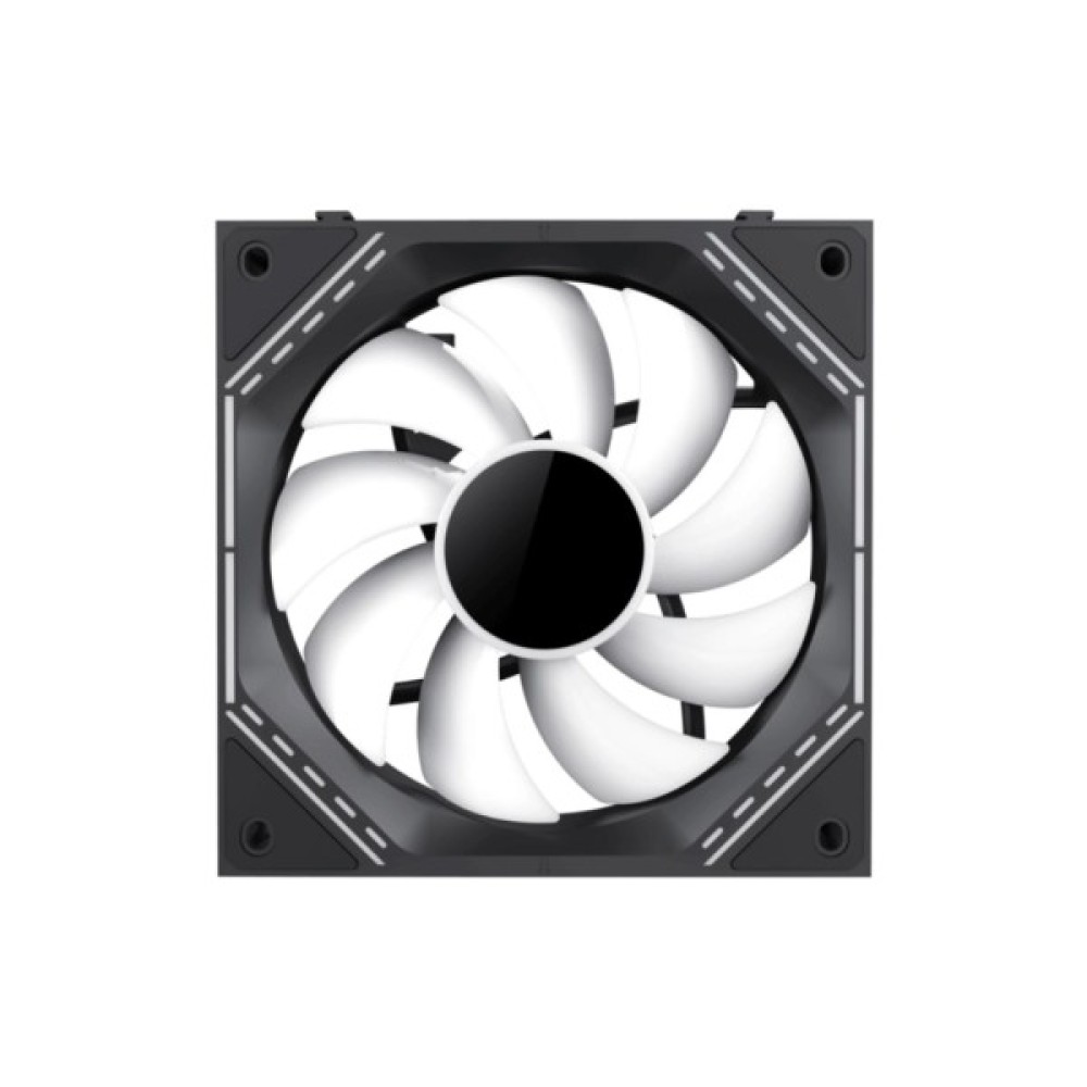 • Три повнофункціональні вентилятори 120 мм ARGB PWM. Інтелектуальна температура контролює швидкість на рівні 800~1600±10% обертів за хвилину, підключаючись до 4-контактного роз’єму PWM на материнській платі, тому швидкість вентилятора автоматично контролюється та забезпечує тиху роботу вентиляторів.