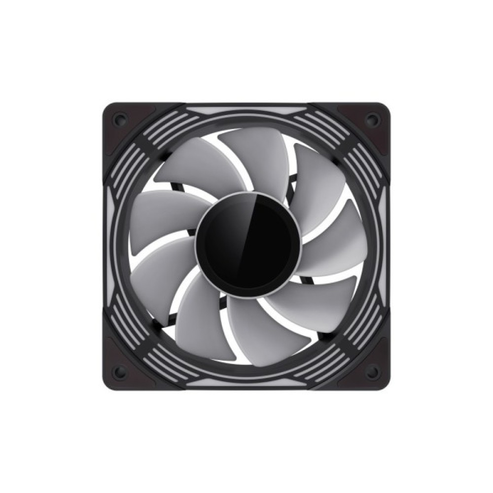 3 повнофункціональні 120-мм вентилятори ARGB PWM. Інтелектуальна температура контролює швидкість на рівні 800~1600±10% оборотів за хвилину, підключаючись до 4-контактного роз'єму PWM на материнській платі, тому швидкість вентилятора автоматично контролюється та забезпечує тиху роботу вентиляторів. Ці вентилятори є 3-контактними роз'ємами ARGB на 5 В, які з'єднуються один за одним з ХАБом управління ARGB.