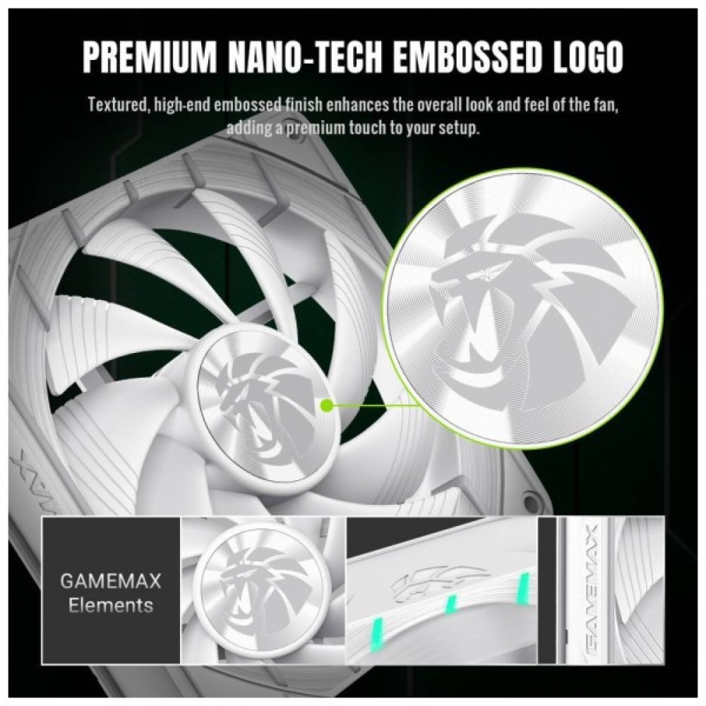 Приголомшливе ARGB-підсвічування: 24 ARGB-світлодіоди створюють унікальний ефект сліду кігтя GameMax. Підтримує синхронізоване регулювання підсвічування з материнською платою, додаючи естетики кіберспорту до вашого корпусу ПК.
