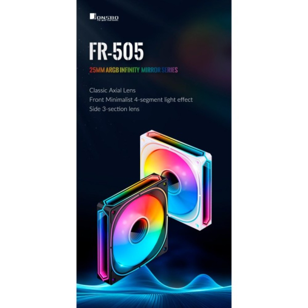 Jonsbo FR-505BR — 120-міліметровий вентилятор для корпуса з ARGB-підсвіткою. Ідеально підходить для геймерів та ентузіастів, які шукають надійний і стильний кулер для свого ПК, що забезпечує ефективне охолодження та привабливий зовнішній вигляд.