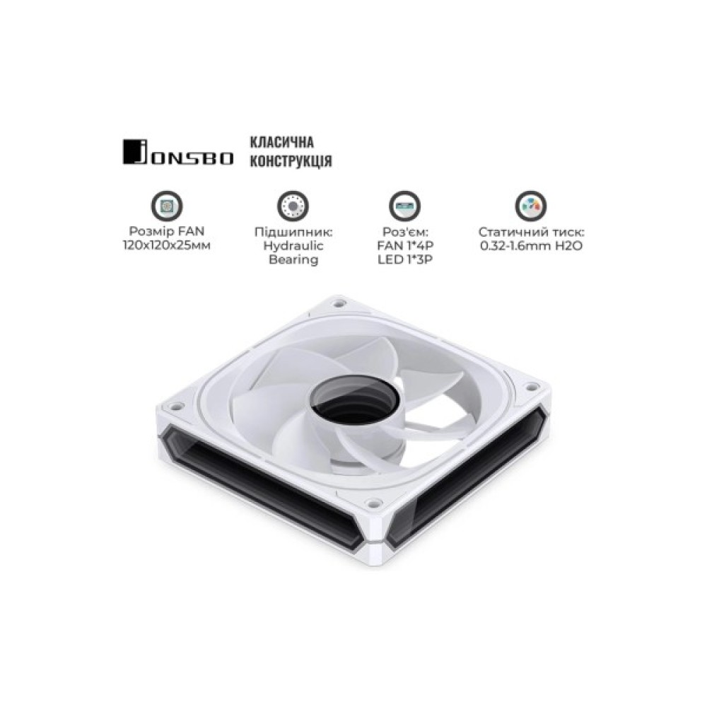 Jonsbo FR-505WR Reverse ARGB White – це 120-мм вентилятор з унікальним дизайном реверсивних лопатей, що забезпечує оптимальне охолодження за низького рівня шуму. Завдяки адресному ARGB підсвічуванню та підтримці 5В 3-Pin, вентилятор може синхронізуватися з більшістю сучасних систем керування освітленням. Він оснащений функцією PWM, яка дозволяє регулювати швидкість обертання від 800 до 1800 об/хв, забезпечуючи повітряний потік до 80.19 м3/год. У комплекті йдуть гумові демпфери зниження вібрацій, що робить його ідеальним вибором для тихих систем.