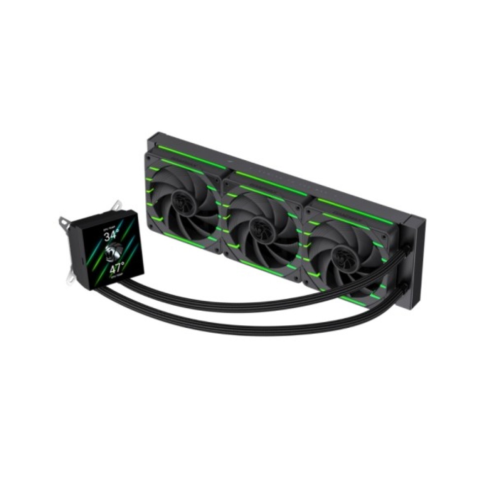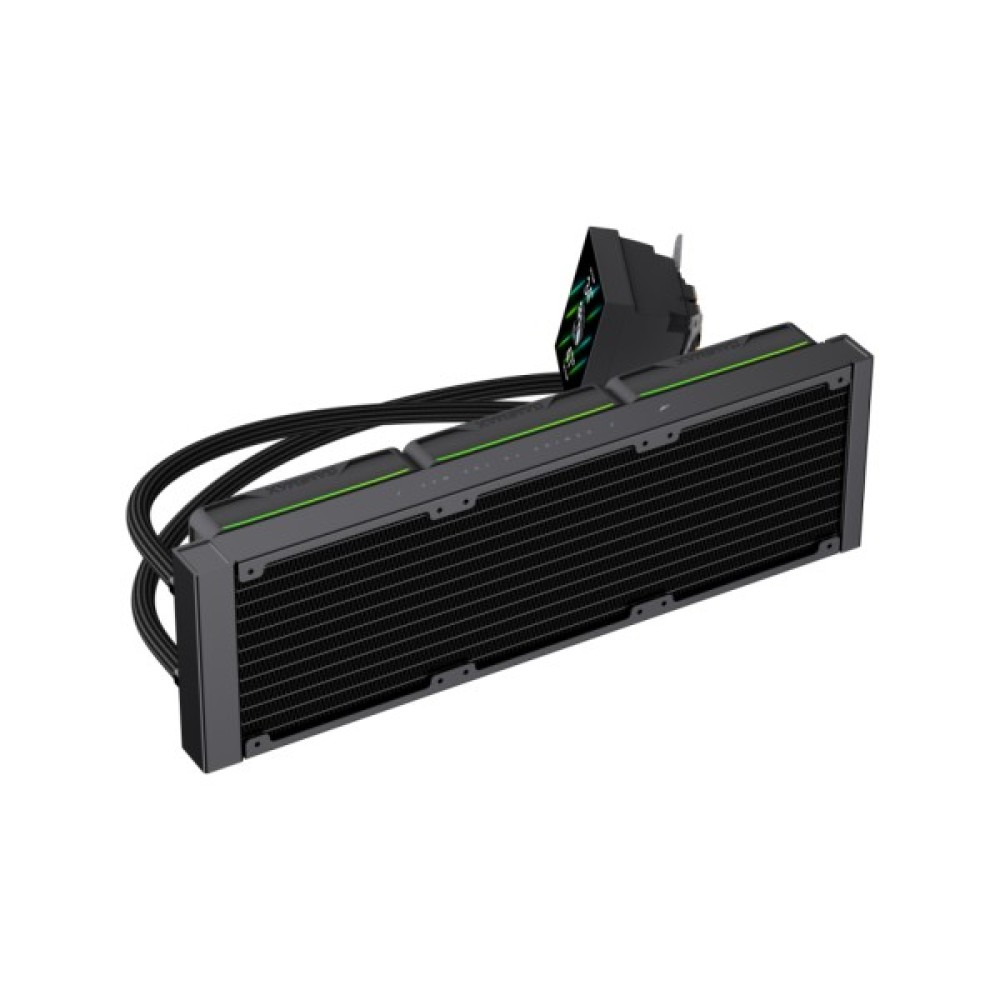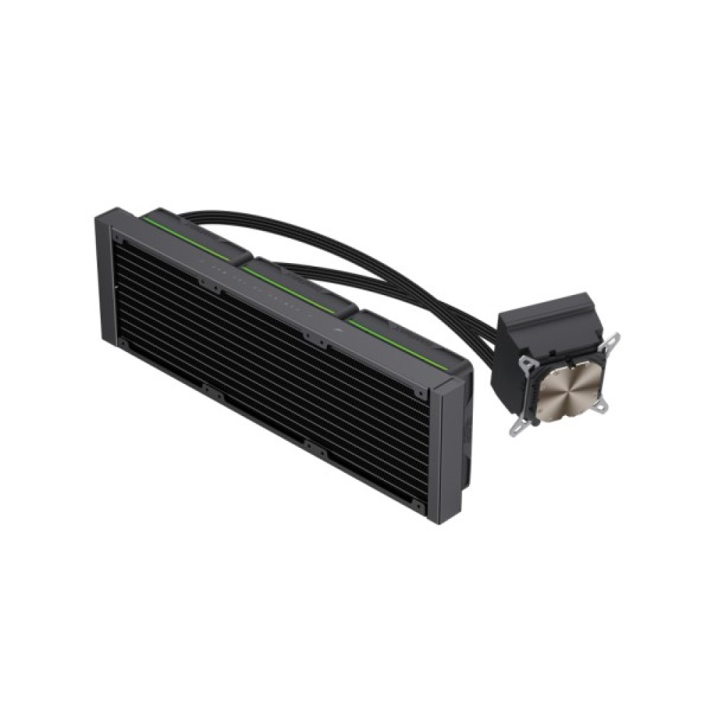 Мідна основа водоблоку забезпечує ефективну передачу тепла від процесора, а алюмінієвий радіатор розміром 397х120х27 мм разом із трьома вентиляторами швидко відводить тепло з системи. Потужність охолодження досягає TDP 330 Вт, що дозволяє використовувати кулер навіть із продуктивними процесорами та при розгоні.