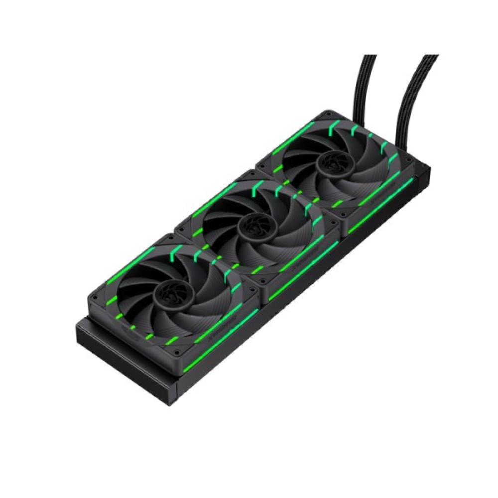 Система оснащена трьома 120-мм вентиляторами Tornado T12 ARGB із PWM-керуванням. Вони працюють у діапазоні 800–2200 об/хв, створюючи потік повітря до 66,89 CFM і забезпечуючи стабільне охолодження навіть під високим навантаженням. Посилений мотор і гідродинамічний підшипник сприяють тихій роботі та довговічності компонентів.