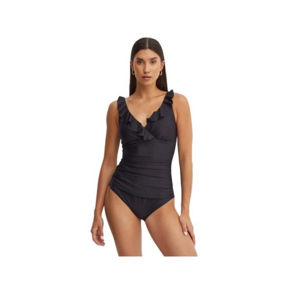 Відкрийте для себе надзвичайну елегантність і вишуканий стиль з нашим жіночим суцільним купальником прикрашений витонченими рюшами на декольте.