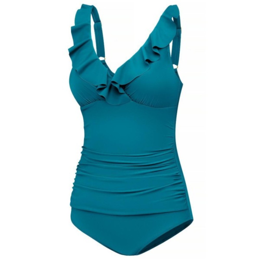 Відкрийте для себе надзвичайну елегантність і вишуканий стиль з нашим жіночим суцільним купальником прикрашений витонченими рюшами на декольте.