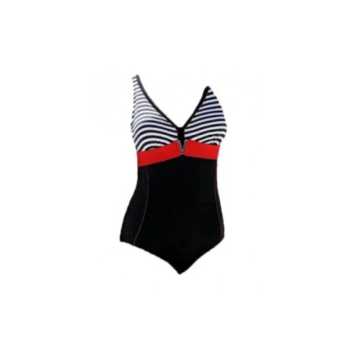 Чудовий купальник у морському стилі від Aquaspeed, MARIS, зі смугастим верхом, контрастним червоним поясом під грудьми з декоративним оздобленням та U-подібною спинкою.