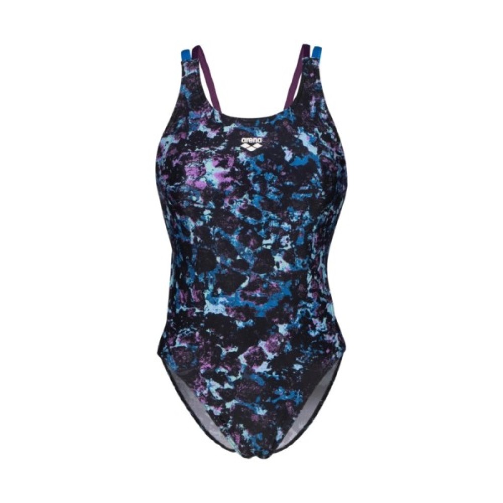 Купальник Arena Rockin Swimsuit Swim Tech Mult 008159-889 чорний, синій, фіолетовий 42 (3468337406532)