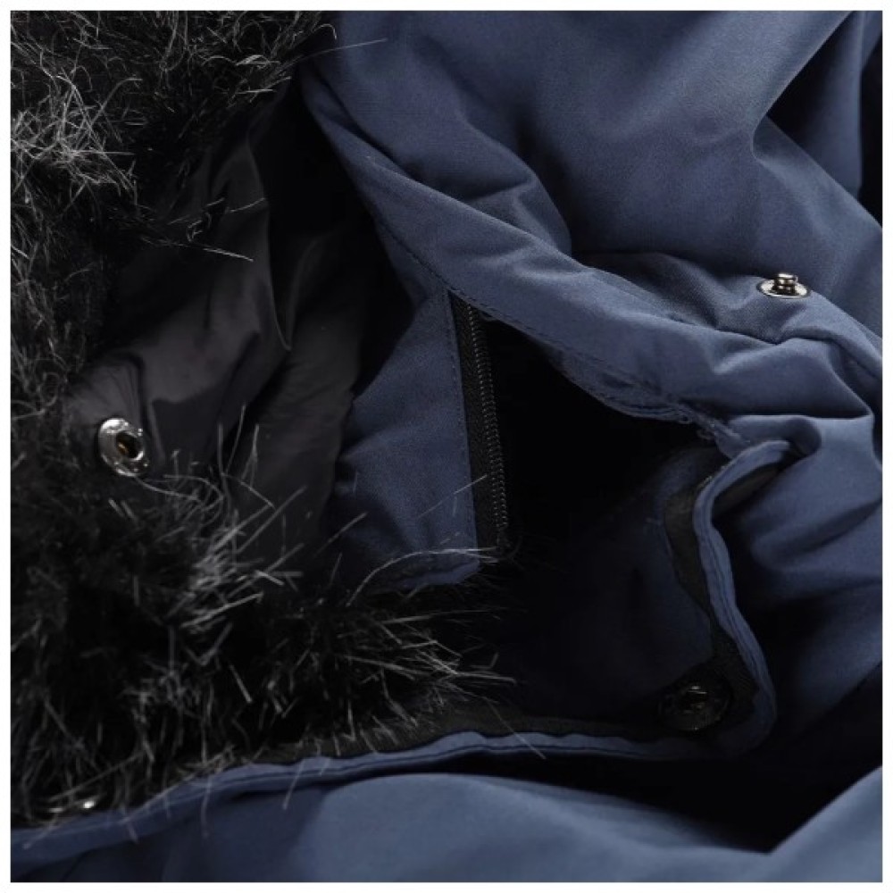 Еластичний матеріал і напівприталений крій дозволяють рухатися вільно під час активностей. Капюшон із внутрішнім теплим коміром захищає голову й шию, а знімна декоративна хутряна обробка додає стилю. Манжети на рукавах і регульована гумка по низу запобігають проникненню холодного повітря.