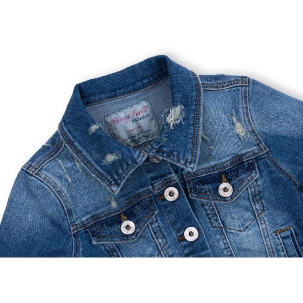 Стильна джинсова куртка з "вареного" стрейчевого котону від турецької фірми Breeze для юної модниці. Пряма класична укорочена модель «під пояс» без підкладки, з довгими рукавами на манжетах