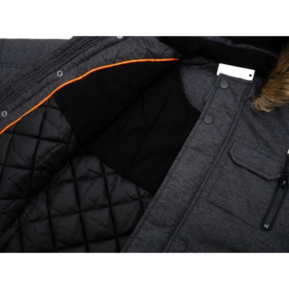 Капюшон не з’ємний, теплий, всередині з об'ємною флісовою підкладкою. Край капюшона оформлений штучним хутром.
