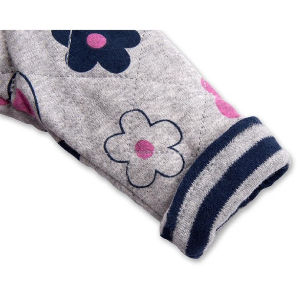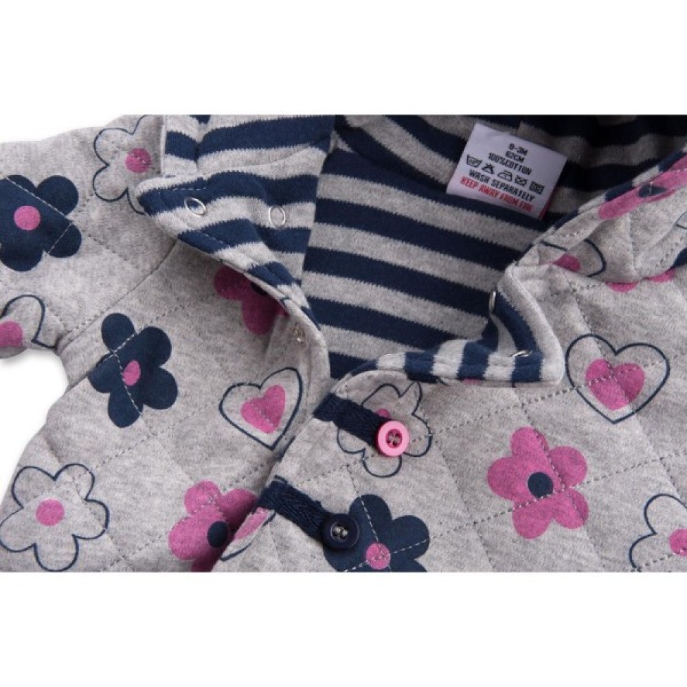 Теплий костюмчик зі стильним забарвленням і в сучасному дизайні буде відмінно виглядає на Вашій малечі. Квіткового забарвлення кофточка з капюшоном зручно застібається. Штанці в смужку на гумці, яка не буде здавлювати дитину. Зручний і практичний комплект підійде на всі випадки життя.
