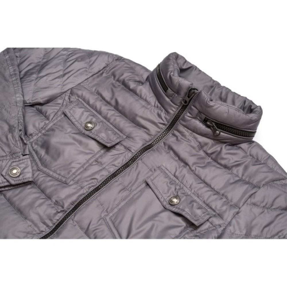 • Куртка прямого покрою, з коміром-стійкою, на комірі зроблено горизонтальну потайну кишеню із застібкою на блискавку, в яку ховається каптур (капюшон тонкий з 1 шару болоньї).