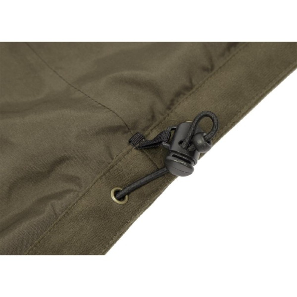 Щільність прилягання регулюється за допомогою еластичної стропи з фіксатором на подолі та клапанами з липучками на манжетах.