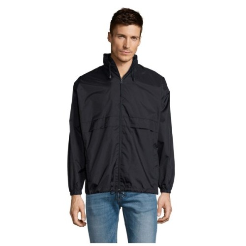Вітрівка може бути складена в кишеню і закріплена еластичним ременем на талії.
