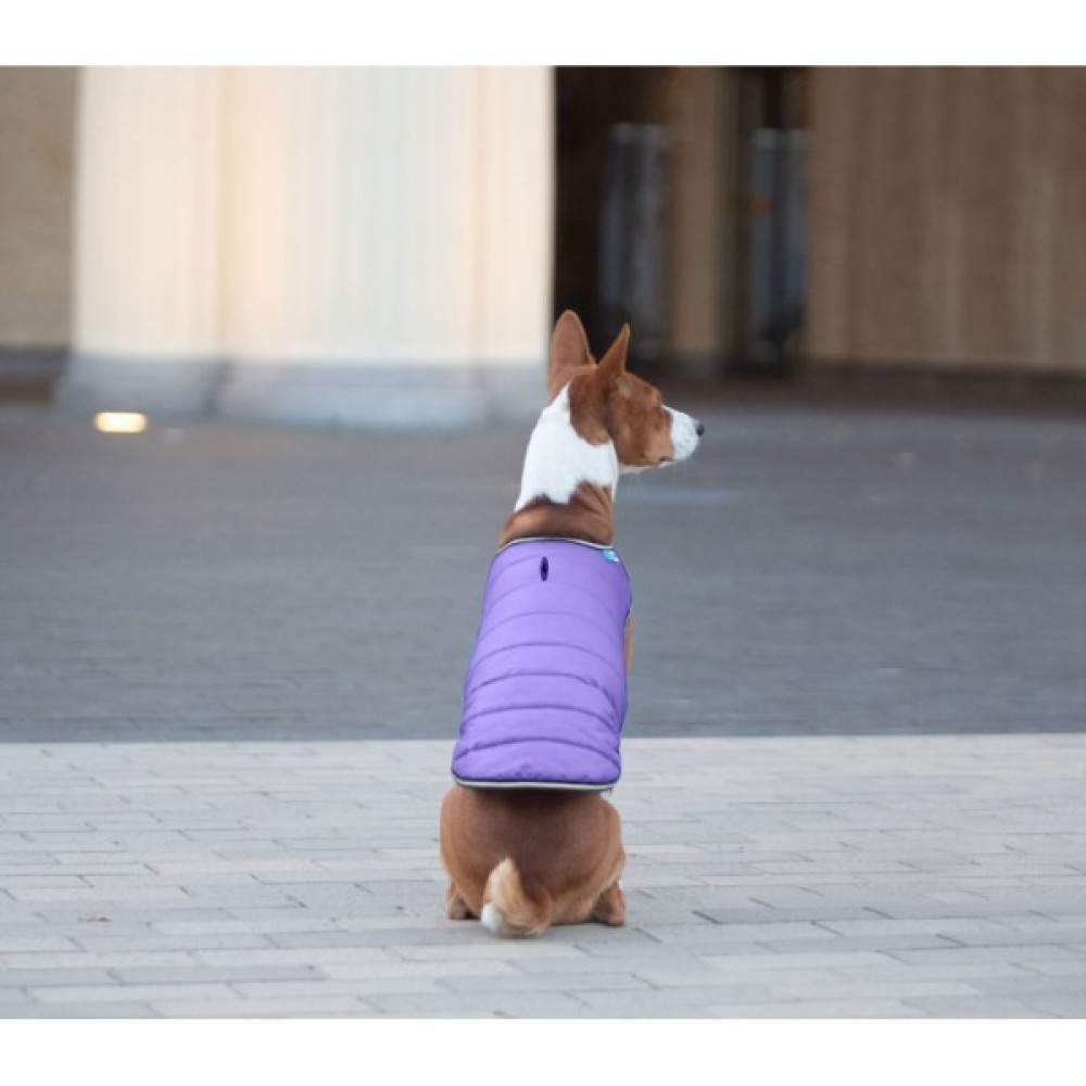 Куртка-накидка м'яка і тепла, відкривається і регулюється на липучці. Має простий дизайн і легко одягається на собаку. Всі зрізи окантовані гумкою зі світловідбивальною смугою, що підвищує помітність вихованця у темний час доби.