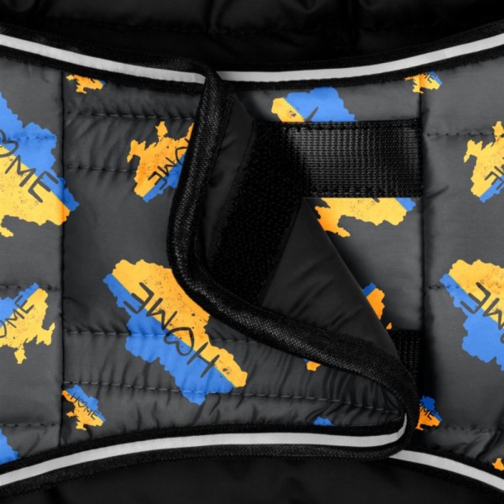 Курточка-накидка м'яка та тепла, відкривається та регулюється на липучці. Має стильний дизайн та легко одягається на собаку. Всі зрізи окантовано гумкою зі світловідбиваючою смугою, що підвищує помітність вихованця у темний час доби.