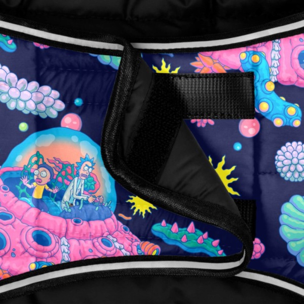 Куртка-накидка WAUDOG Clothes – крутий вибір для домашнього вихованця. Ця куртка-накидка легка, тепла та м'яка. Має крутий ліцензійний малюнок із зображенням героїв улюбленого серіалу Рік і Морті. Її дуже легко одягати на собаку, адже вона застібається та регулюється завдяки липучкам, до яких не прилипає шерсть. А світловідбивна смужка на зрізах куртки забезпечує безпеку собаки.