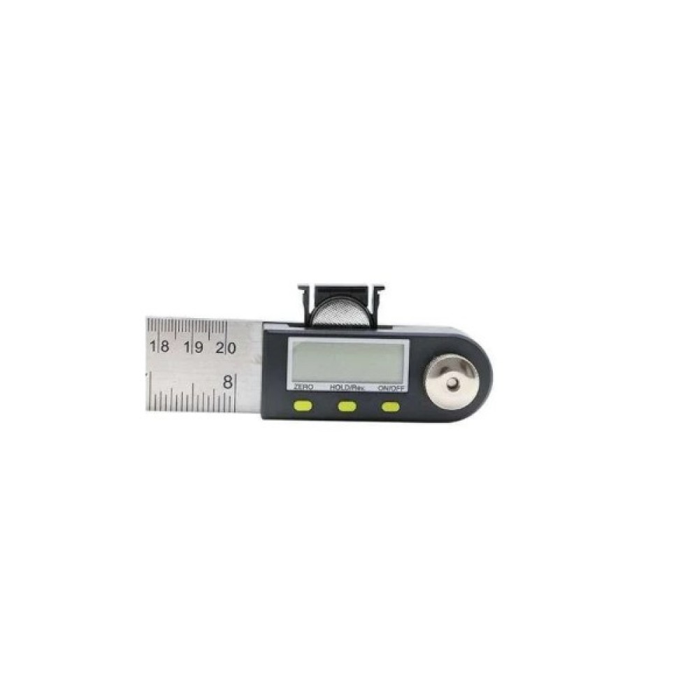 Щоб підготувати прилад до роботи, зведіть разом 2 лінійки. Потім натисніть кнопку On/Off. Далі розводьте лінійки до тих пір, поки вони не утворюють потрібний кут. Його значення з'явиться на екрані. Затримати його можна кнопкою Hold. Якщо утримати кнопку HOLD більше 3 с, то можна розгорнути екран на 180°. Zero обнулить отримані цифри.
