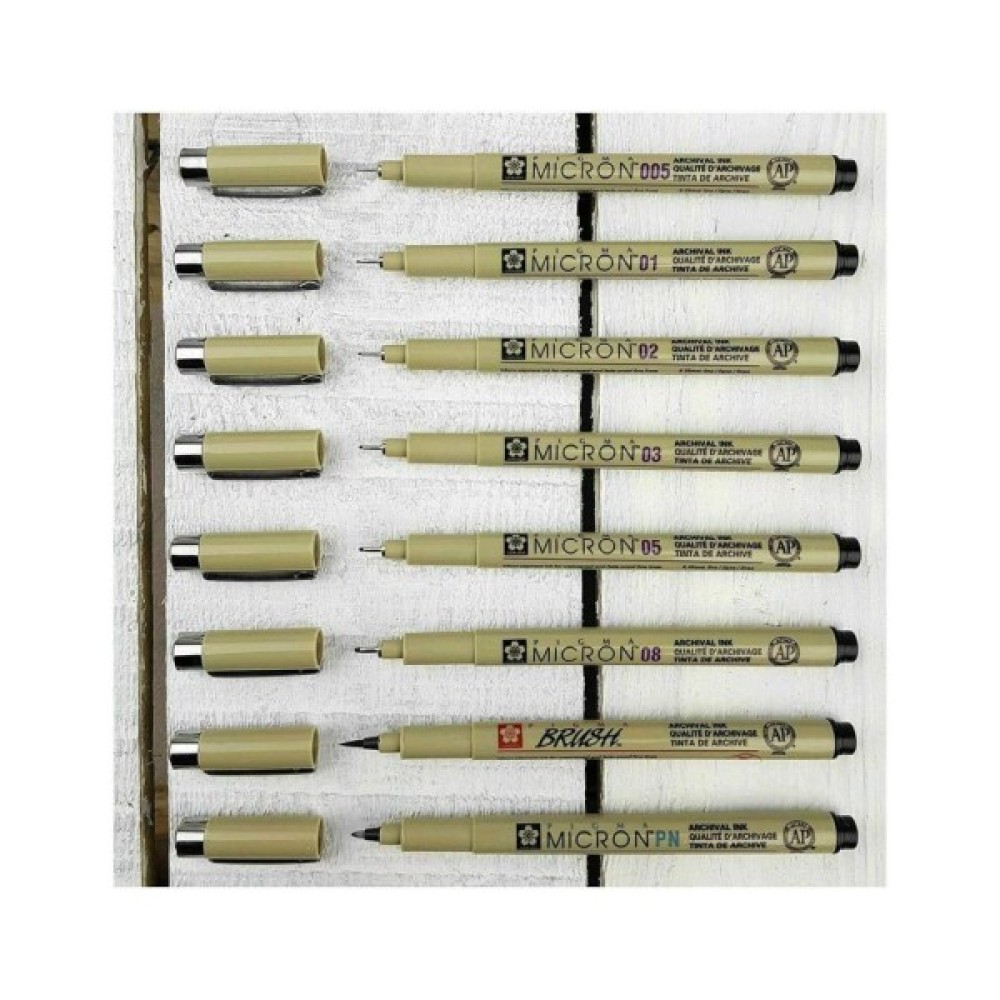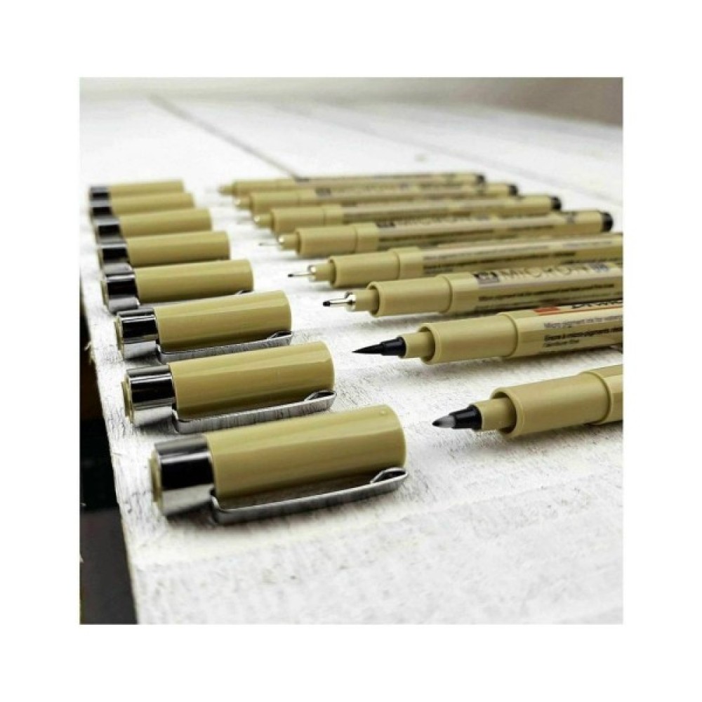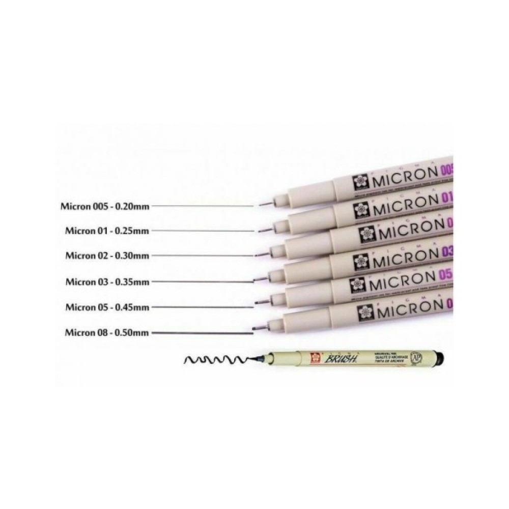 ∙ комплект містить шість лінерів Pigma Micron різних розмірів, починаючи від дуже тонких до товстих, лінер-пензель Pigma Brush, всі чорних кольорів та Pigma Micron PN додано безкоштовно!∙ картина на упаковці, виконана архітектором / художником Деном Хогма