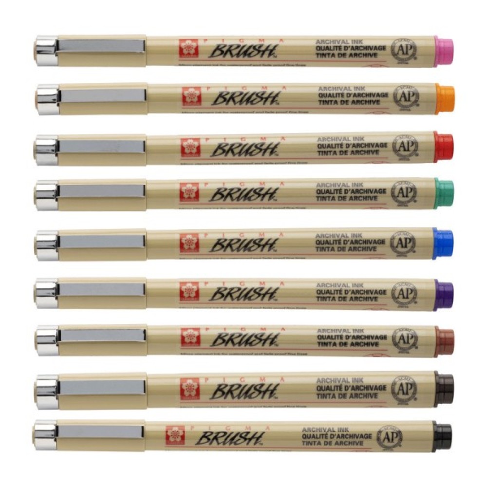 Лінери-пензлі PIGMA Brush від Sakura - професійні лінери із cтержень, яких - гнучкий пензель. Як і в лінерах PIGMA Micron, у лінерів-пензлів мікропігментні чорнила у складі. Водостійкі пігментні архівні чорнила на водній основі. Стійкі до вицвітання, та розтирання. Не протікають навіть через дуже тонкий папір, не висихають, при відкритому ковпачку (навіть на протязі декількох днів).Лінери-пензлі PIGMA Brush від Sakura чудово підходять для скетчів, ілюстрацій, креслень, письма, ведення щоденників, архівів, довідників і т.д. Доступні кольори:- оранжевий- коричневий- червоний- рожевий- фіолетовий- зелений - синій- чорний- сепія- сірий- сірий світлийВиробник: Sakura, Японія