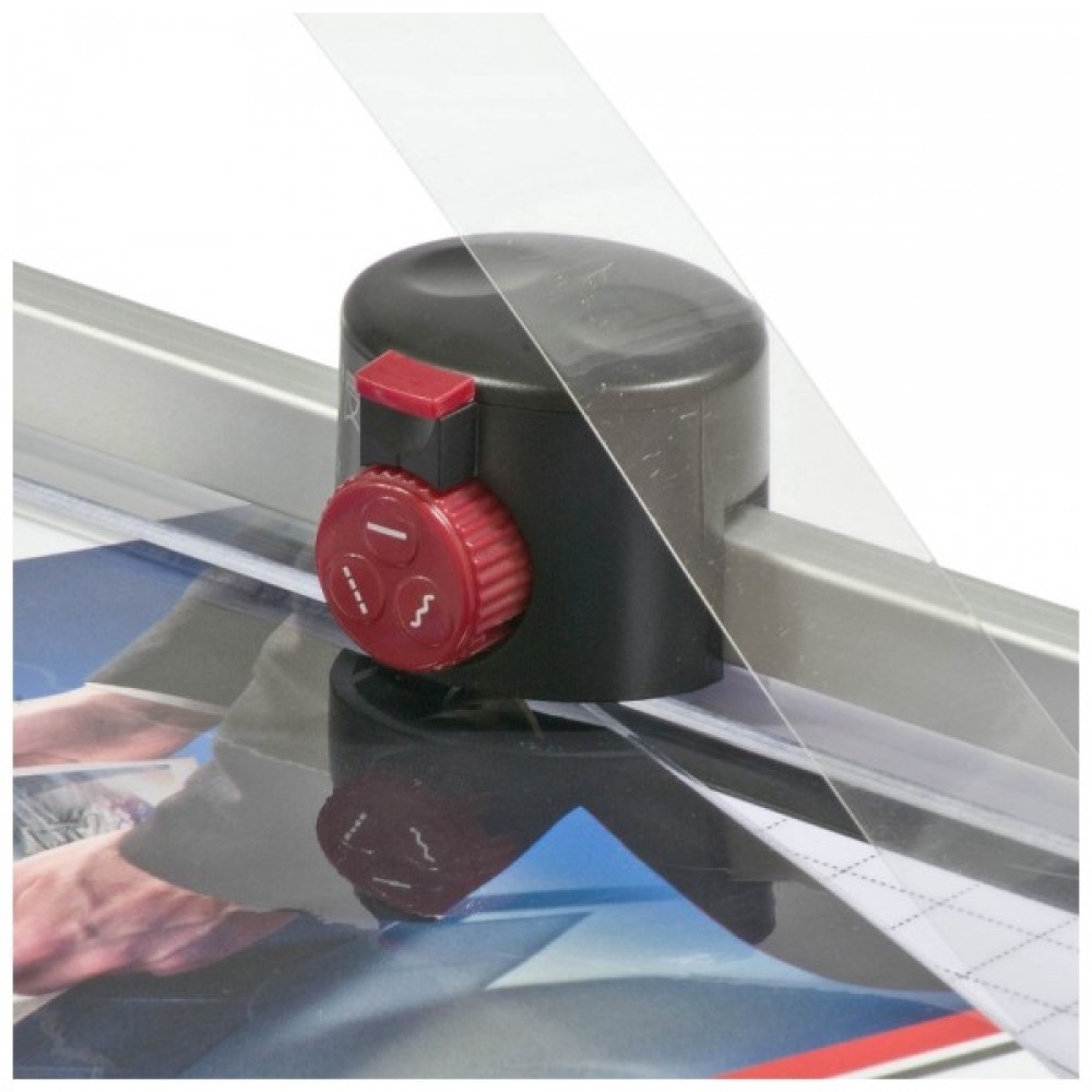 У даній моделі поєднані три функції: ламінатор + роликовий різак з трьома типами різання (прямий різ, фігурний рез «хвиля», мікроперфорація) + Заокруглювач кутів.