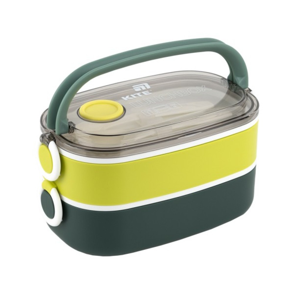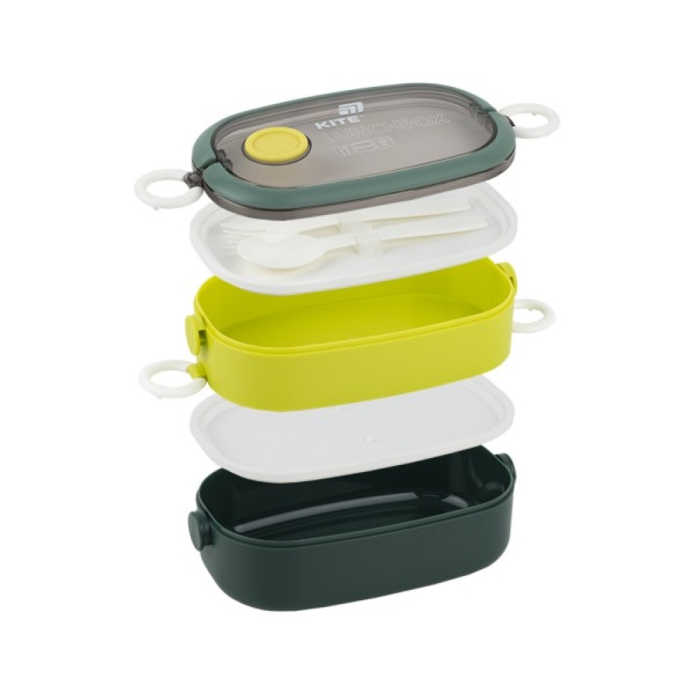 Ланчбокс подвійний Kite — універсальний та місткий контейнер для повноцінного обіду, який адаптується під ваш ритм життя. Ідеальний для школи, офісу, прогулянок, пікніків і подорожей. Завдяки двом відділенням із додатковими кришками, ви самі вирішуєте, скільки взяти з собою: одну ємність чи обидві одразу. Контейнер виготовлений із безпечного харчового пластику, який не вбирає запахів, не містить бісфенол-А та не змінює смак їжі. Прозора верхня кришка з клапаном дозволяє розігрівати страву в мікрохвильовці (достатньо просто відкрити клапан), а надійні бічні клямки фіксують обидві ємності разом. Усередині — два окремих містких відділення, кожне з додатковою внутрішньою кришкою. Можна використовувати обидва для великого обіду або лише одне — для перекусу. У комплекті є пластикова ложка та виделка, зручно зафіксовані всередині.