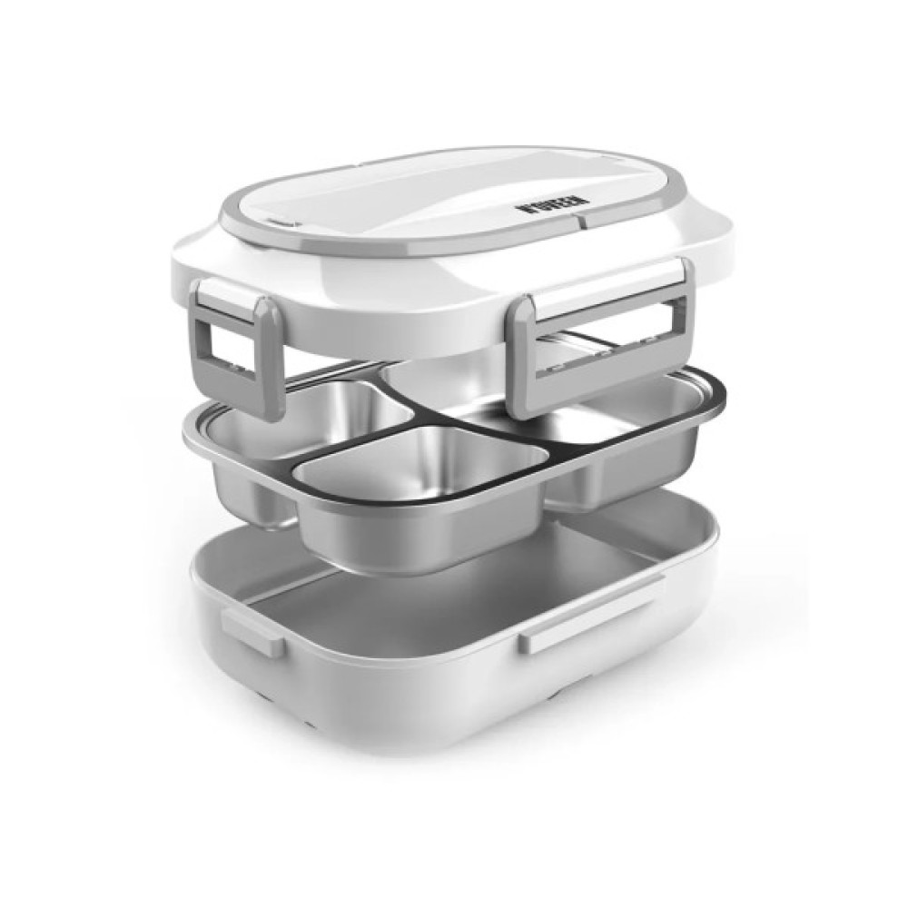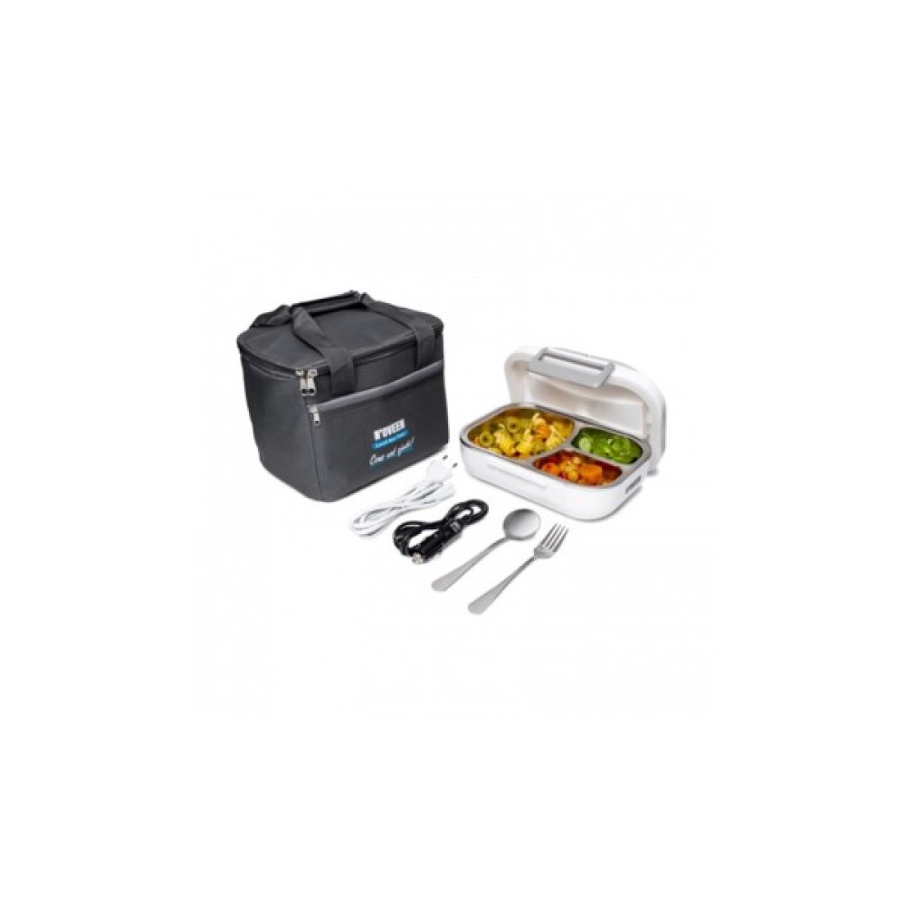 Ланч-бокс LB510 - це поєднання функціональності і мобільності. Надійний і естетичний пристрій оснащений нагрівальним елементом, який дозволяє розігрівати їжу за 30 хвилин від мережі або від автомобільного прикурювача. Нагрівач щільно закритий затискачами, які блокують доступ повітря. Завдяки цьому блюдо довше залишається свіжим. Термосумка додатково захищає і підтримує температуру їжі. Ланч-бокс зручний в подорожах, його можна брати на роботу, навчання, водієві і використовувати для підігріву їжі дітям.