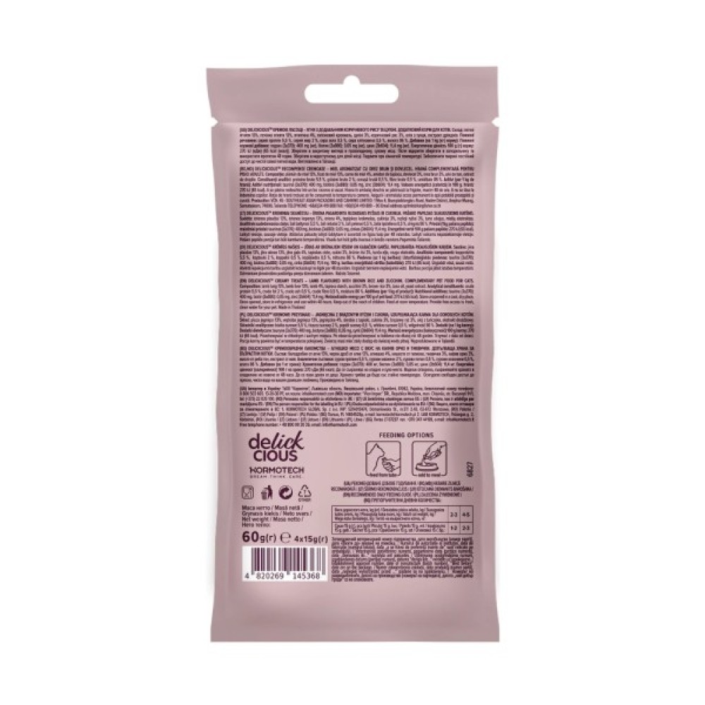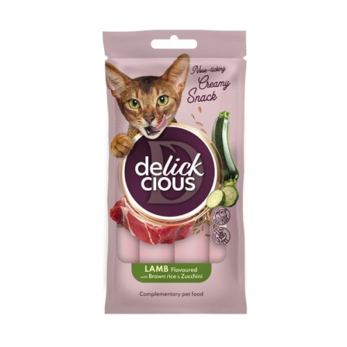 Delickcious Lamb Flavoured with Brown rice & Zucchini кремові ласощі – ягня з додаванням коричневого рису та цукіні. Додатковий корм для котів.