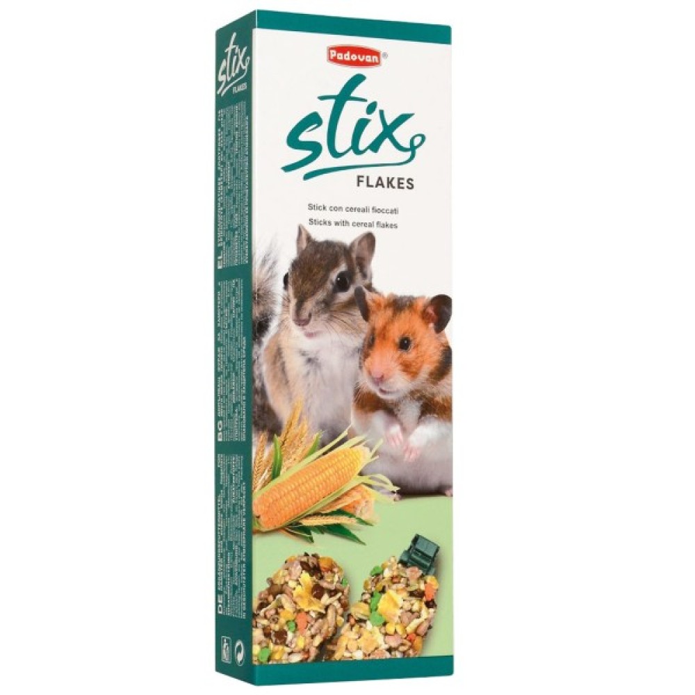 PADOVAN Stix Sweet Parrocchetti – ласощі для середніх папуг. Розсипчасті запечені палички з арахісом та медом для додаткового харчування разом з основним раціоном птахів.
