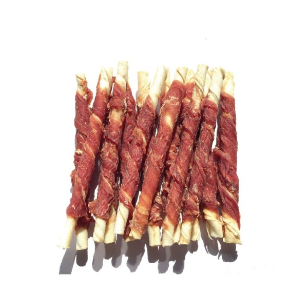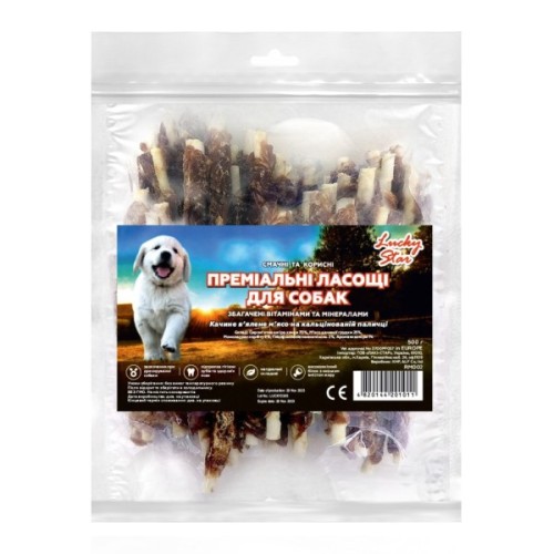 Апетитні ласощі для собак у вигляді крученого м'яса качки і пресованої кістки. М'ясо збагачене кальцієм, який особливо необхідний собакам для формування міцних кісток і зубів. Ласощі буде особливо корисно цуценятам і молодим зростаючим собакам в період формування кісткової системи. Низький вміст жиру і високий вміст білка дозволить дотримуватися дієти і підтримувати оптимальну вагу тварини.