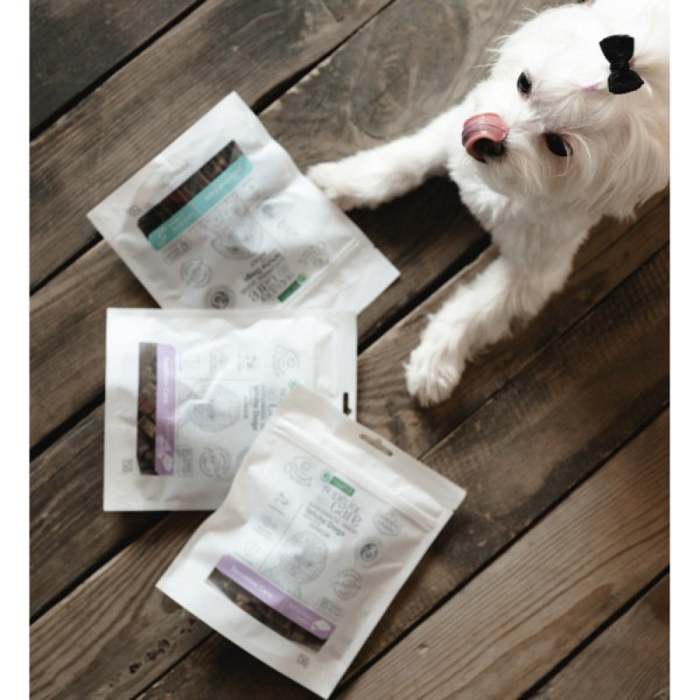 Основним джерелом білка в цих ласощах є протеїн комах. Це екологічне джерело білка, оскільки потребує менше землі, води та корму, ніж традиційна домашня худоба, та є хорошим джерелом високоякісного білка, а також незамінних амінокислот, вітамінів і мінералів. Перероблений білок комах вважається гіпоалергенним, що робить його хорошим вибором для собак із харчовою чутливістю або алергією. Ці функціональні снеки мають більш вологу та м'яку текстуру, ніж звичайні ласощі. Більш вологі продукти розкривають натуральний аромат, що робить їх улюбленими навіть для найвибагливіших домашніх вихованців. До складу входять морські водорості, що є природним джерелом вітамінів А, С, К і В6, кальцію, калію, міді, йоду та марганцю, а також можуть посилювати ефект видалення зубного нальоту та каменю. Функціональні снеки не містять інгредієнтів зернового походження, кукурудзи та соєвих продуктів, які можуть викликати алергічні реакції.