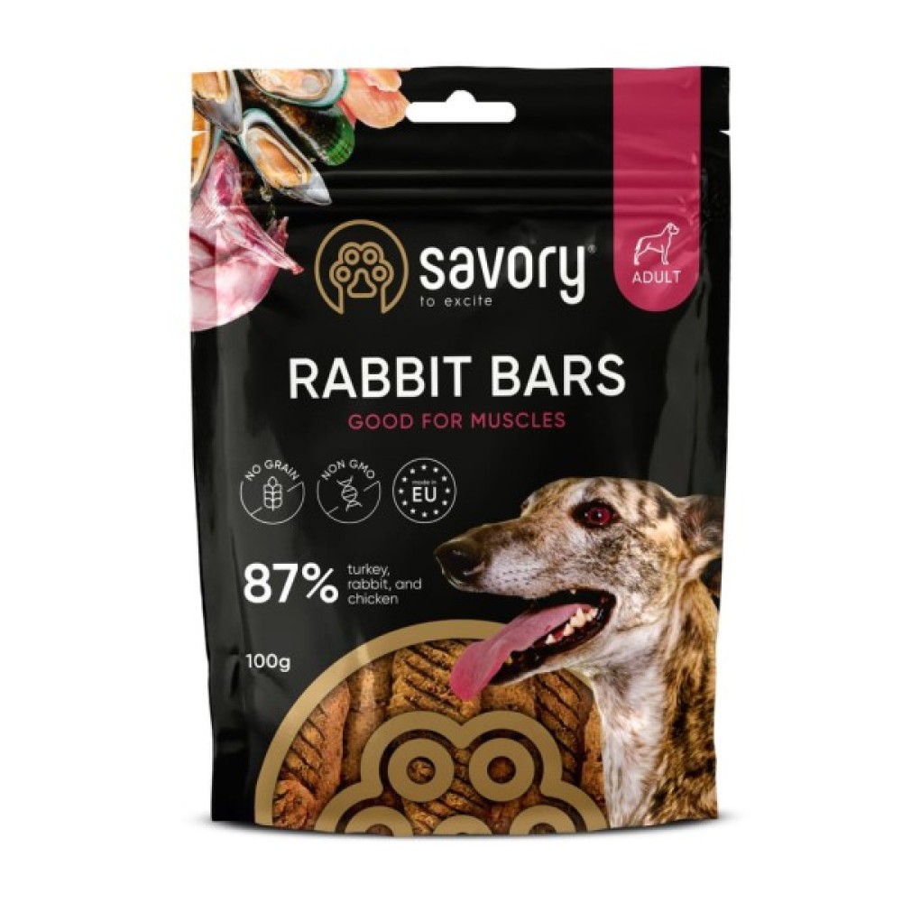 Лінійка ласощів Джерки від Savory – це нове поєднання улюблених смаків, високий вміст м’яса та щільні великі шматочки які можна смакувати ще довше. Батончики не містять зернових та інших додаткових вуглеводів, що робить їх абсолютно безпечними для улюбленців які мають чутливість до глютену. Додавання зеленогубих молюсків робить ці смаколики Savory не лише приємним але й корисним перекусом, який підтримає здоров’я хрящів та суглобів песика.