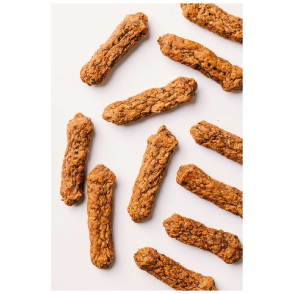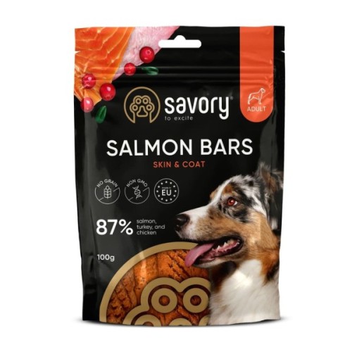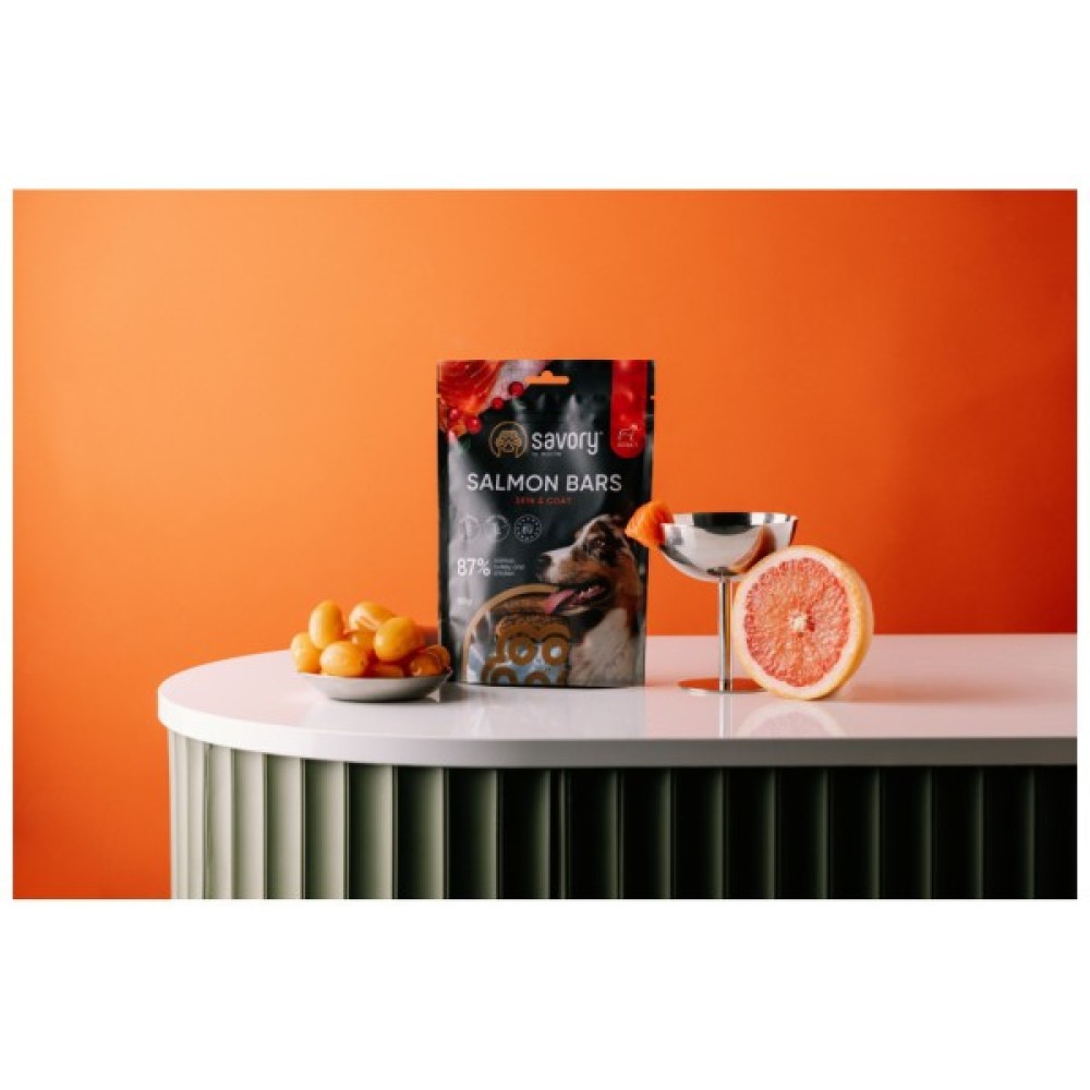 Лінійка ласощів Джерки від Savory – це нове поєднання улюблених смаків, високий вміст м’яса та щільні великі шматочки які можна смакувати ще довше. Батончики не містять зернових та інших додаткових вуглеводів, що робить їх абсолютно безпечними для улюбленців які мають чутливість до глютену. Додавання корисних ягід робить смаколики Savory не лише приємним але й корисним перекусом.