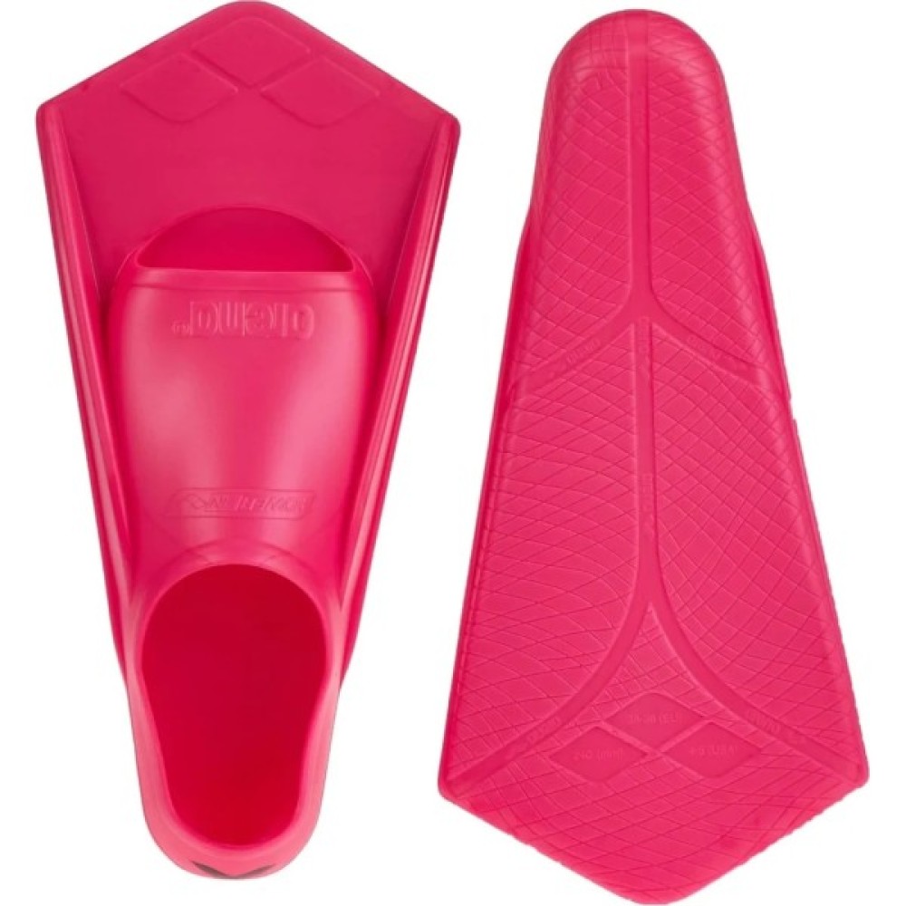 Короткі ласти Arena Powerfin з закритою п'яткою. Ласти Arena - цільна силіконова конструкція. В області лопастей силікон найбальш жорсткий — це дозволяє створювати достатній опір воді. Сапог більш м'який та гнучкий, що дозволяє міцно тримати ногу під час плавання. Завдяки еластичному матеріалу, рух стопи у воді є природнім.