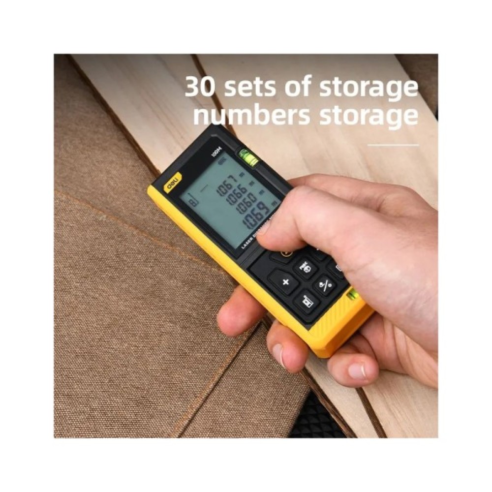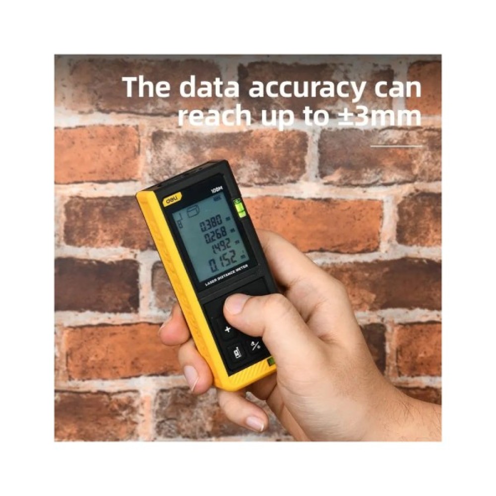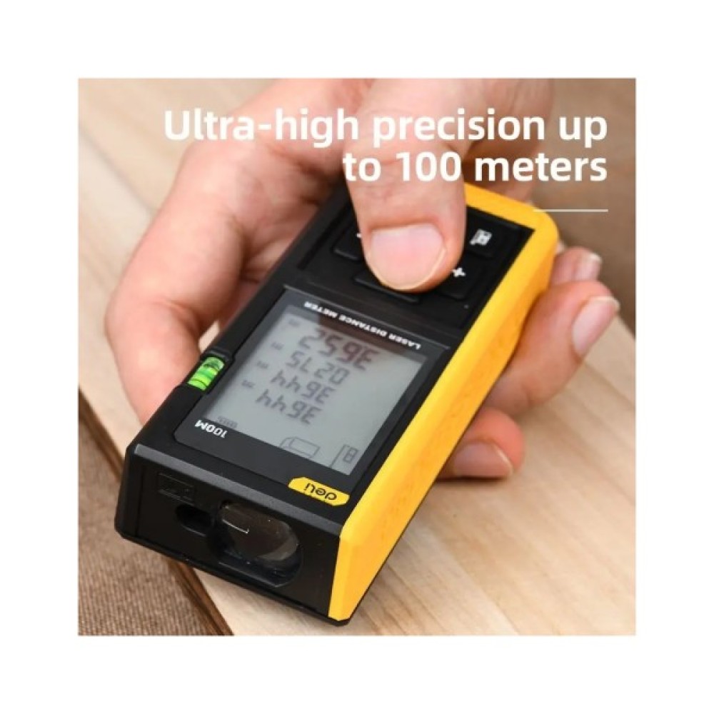 Лазерний далекомір із дальністю до 100 м — ідеальний для точних вимірювань у приміщенні та на вулиці. Має функції довжини, площі, об’єму та трикутника, пам’ять даних і автоматичне вимкнення. Стильний дизайн у яскравій упаковці.